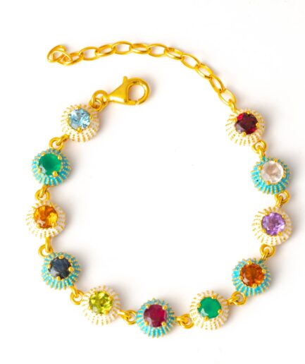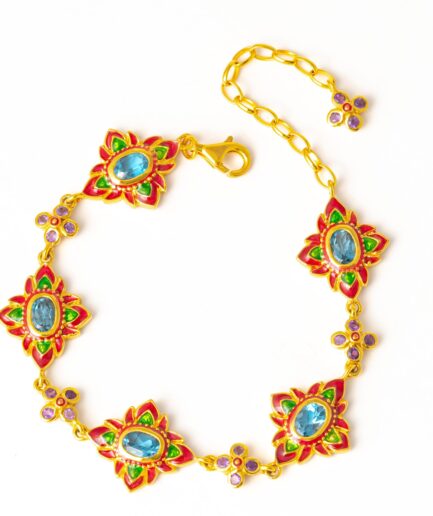 Sterling silver jewelry with 22k gold plated, natural stone and enamel.