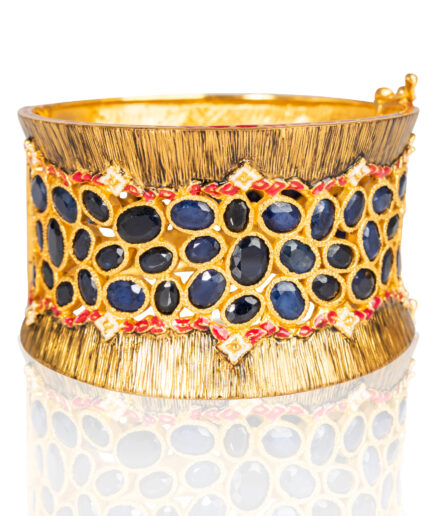 Sterling silver jewelry with 22k gold plated, natural stone and enamel.