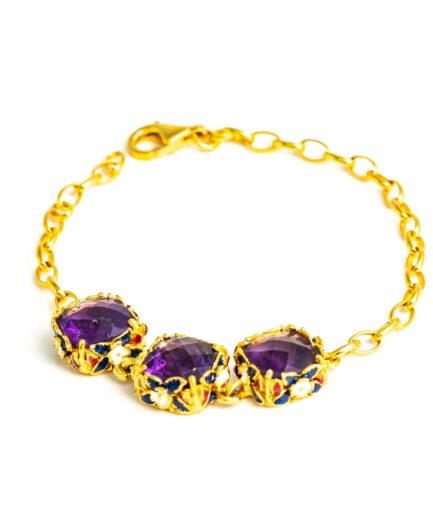 Sterling silver jewelry with 22k gold plated, natural stone and enamel.