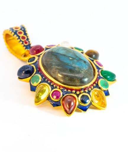 Sterling silver jewelry with 22k gold plated, natural stone and enamel.