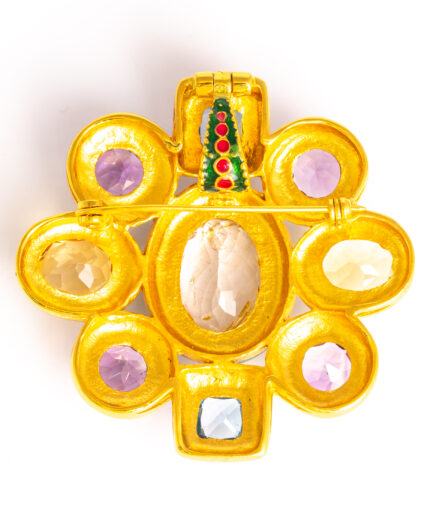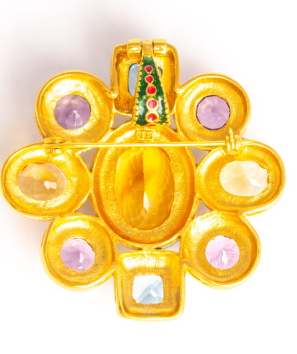 Sterling silver jewelry with 22k gold plated, natural stone and enamel.