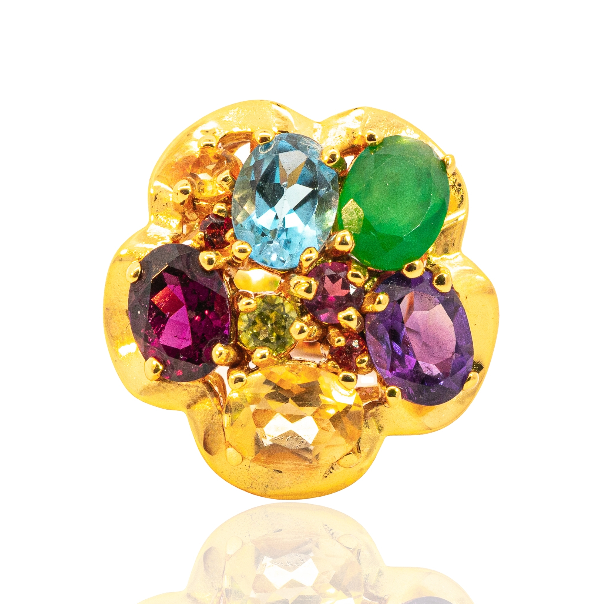 Sterling silver jewelry with 22k gold plated, natural stone and enamel.