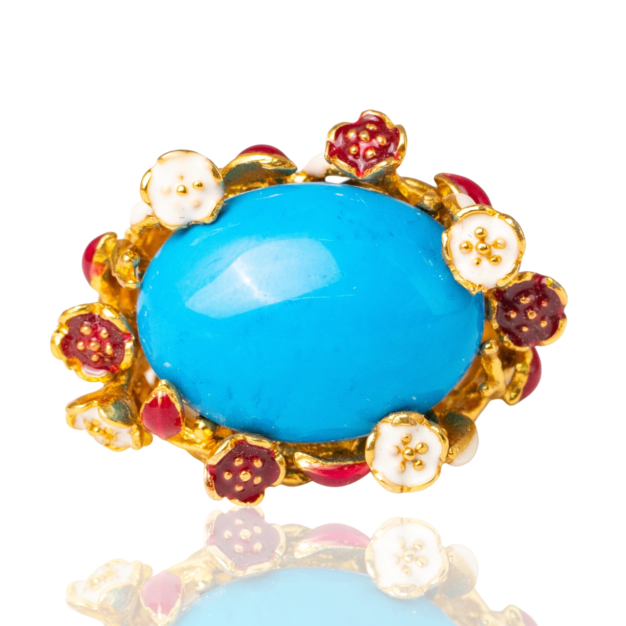 Sterling silver jewelry with 22k gold plated, natural stone and enamel.