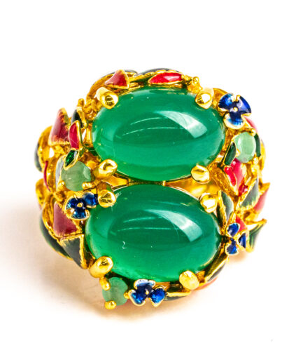 Sterling silver jewelry with 22k gold plated, natural stone and enamel.