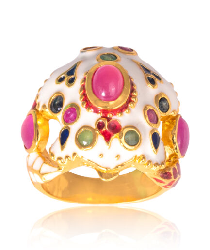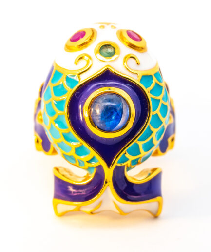 Sterling silver jewelry with 22k gold plated, natural stone and enamel.