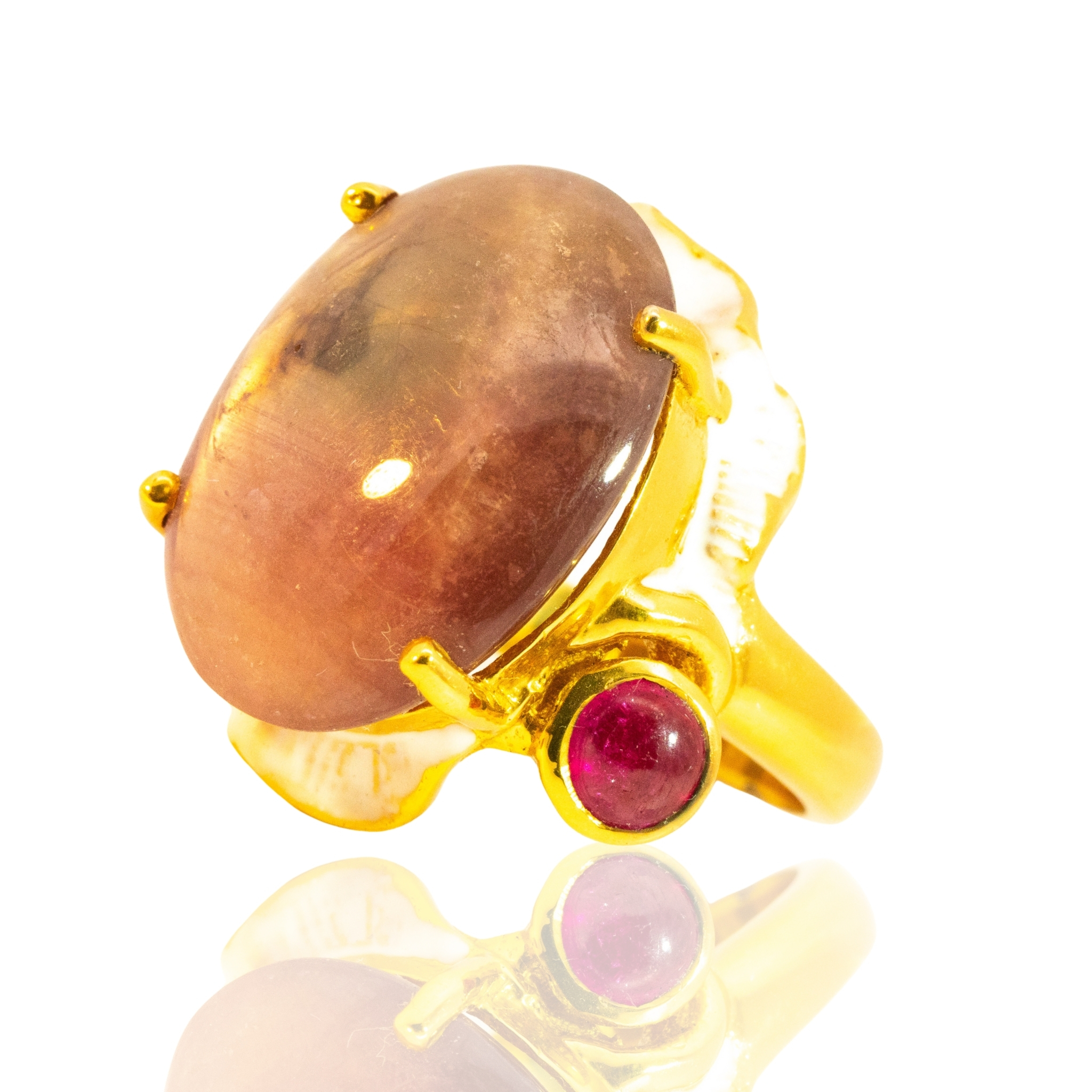 Sterling silver jewelry with 22k gold plated, natural stone and enamel.