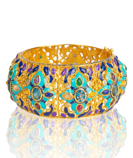 Sterling silver jewelry with 22k gold plated, natural stone and enamel.