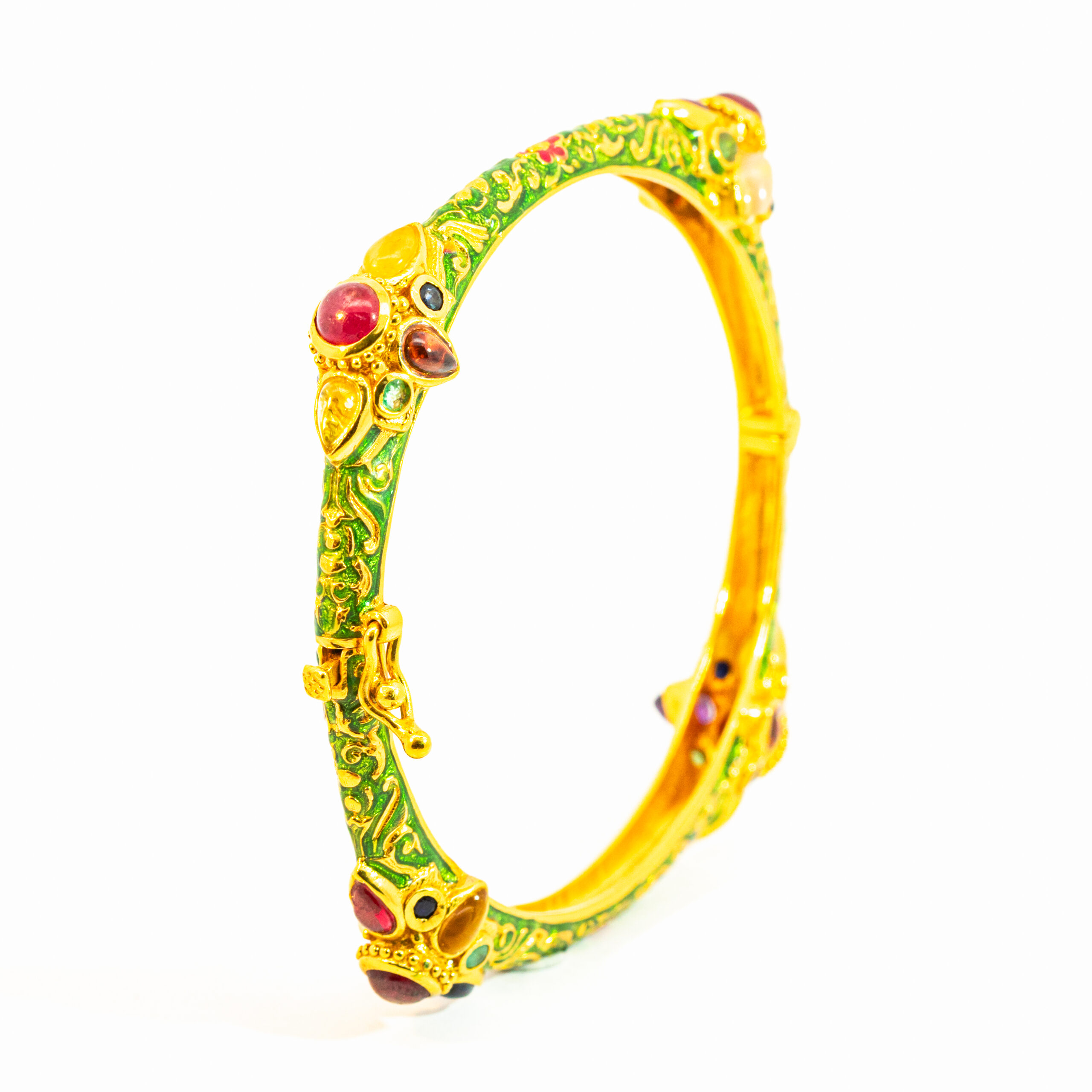 Sterling silver jewelry with 22k gold plated, natural stone and enamel.