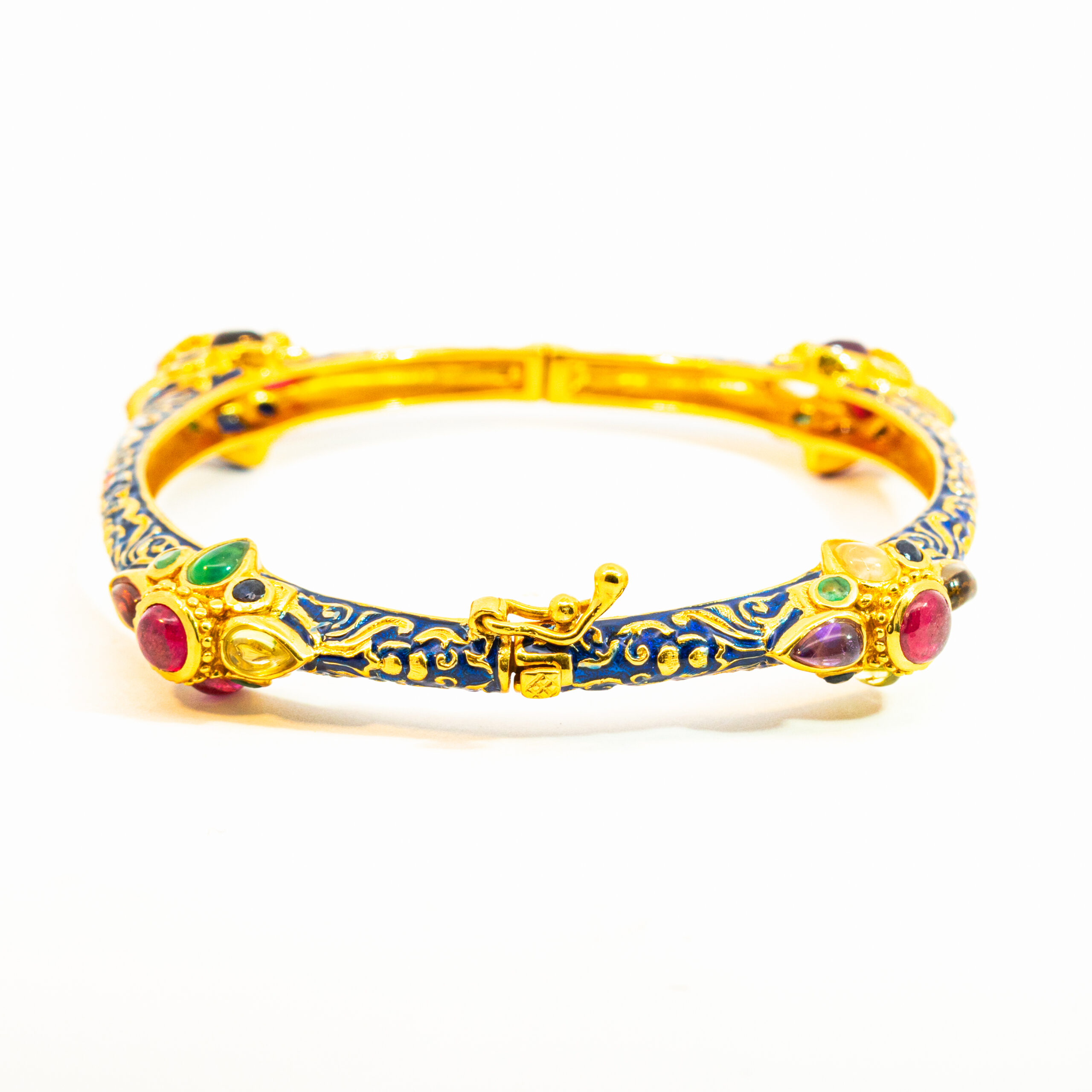 Sterling silver jewelry with 22k gold plated, natural stone and enamel.