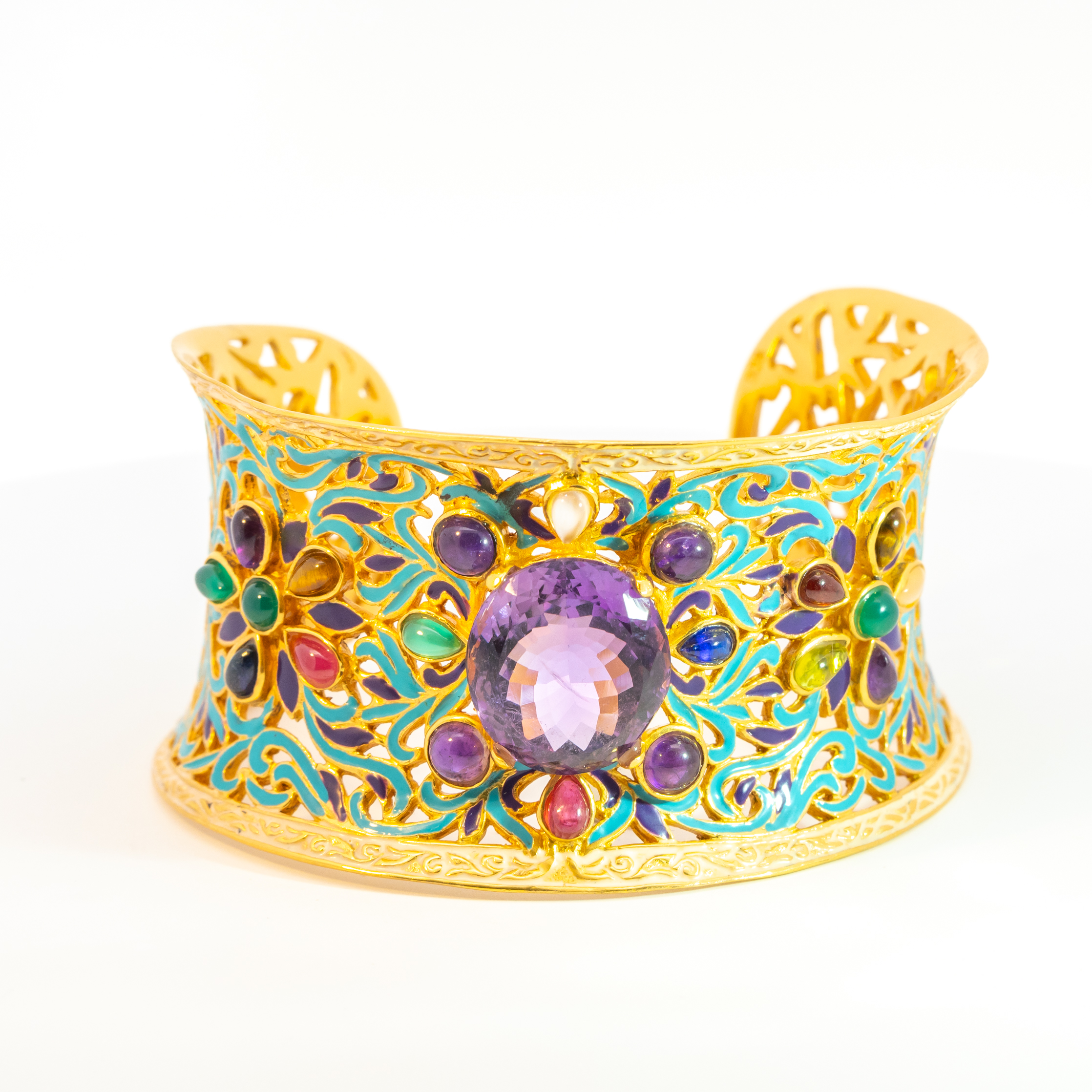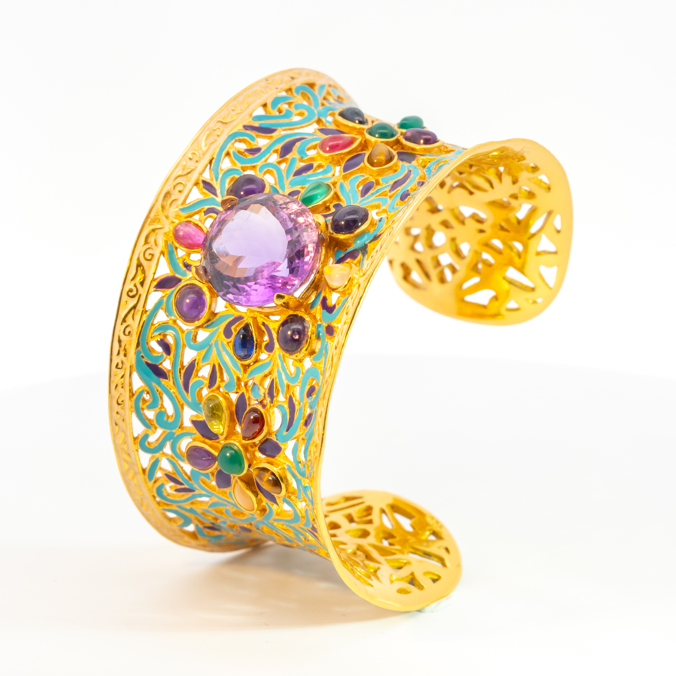 Sterling silver jewelry with 22k gold plated, natural stone and enamel.