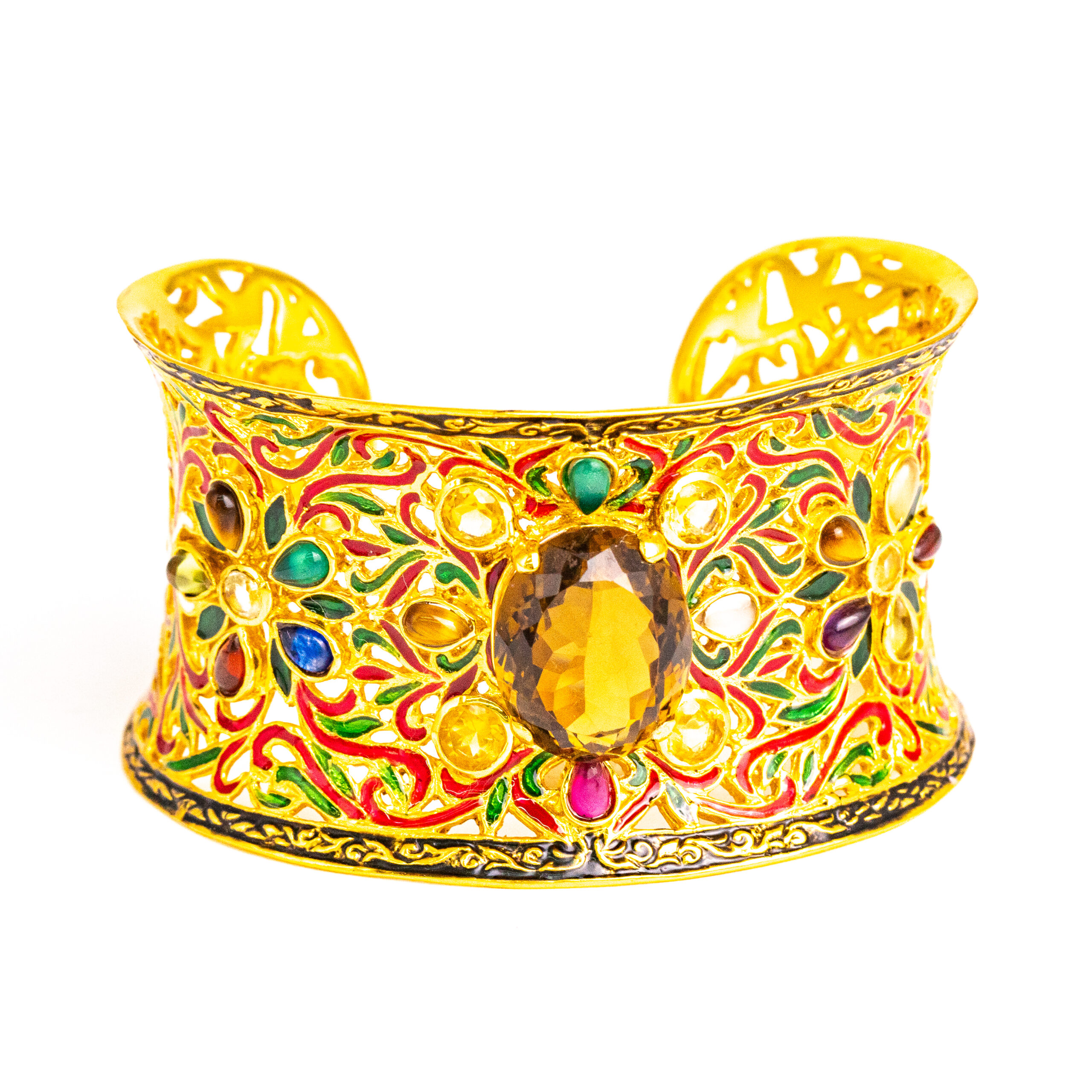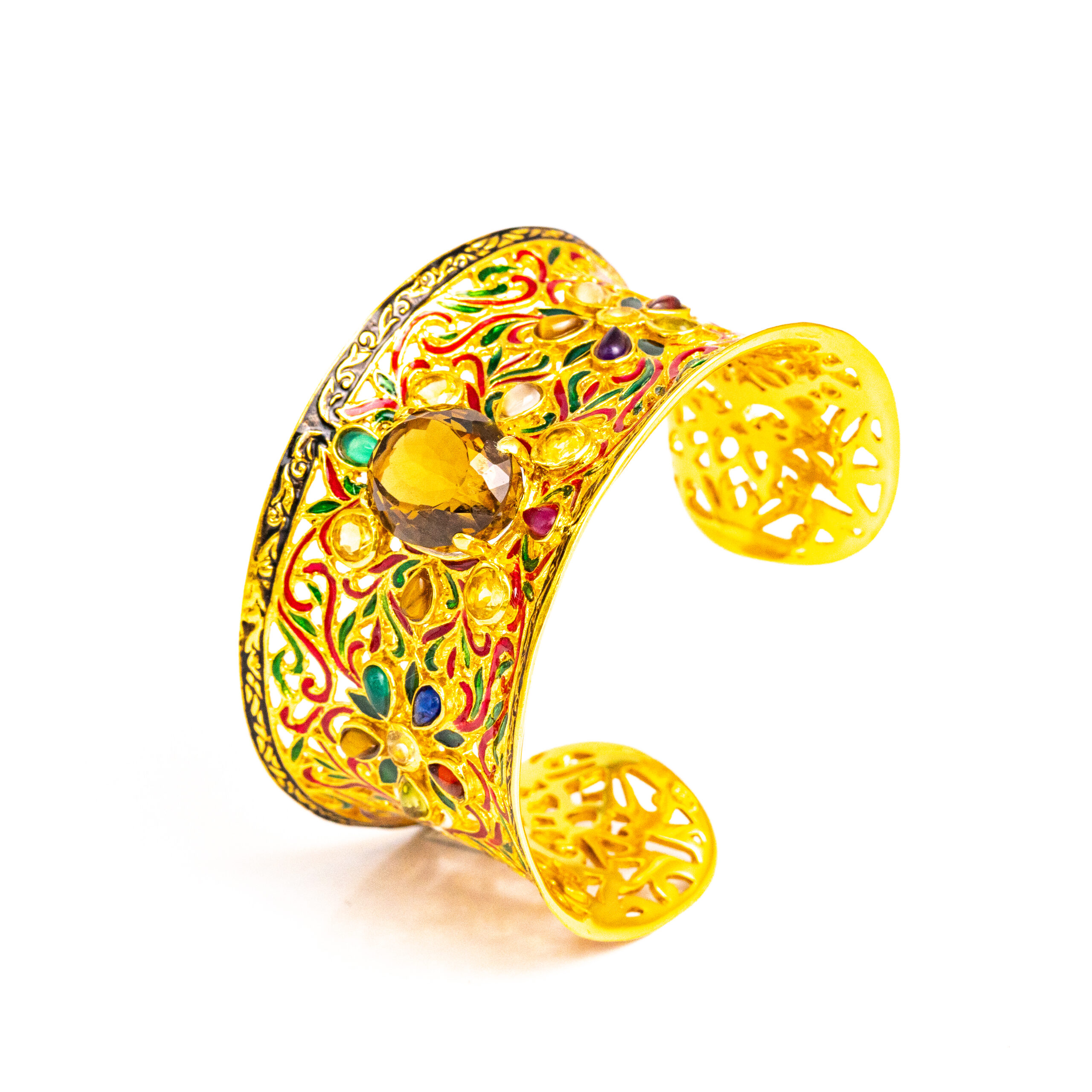 Sterling silver jewelry with 22k gold plated, natural stone and enamel.