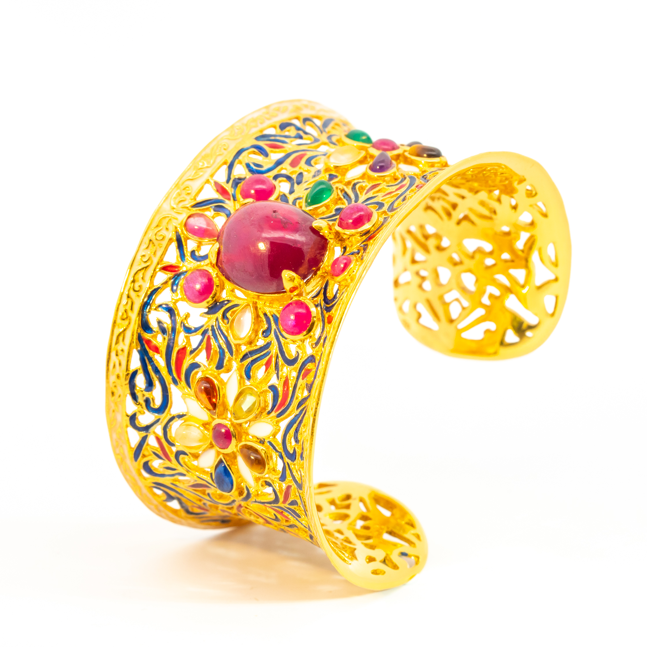 Sterling silver jewelry with 22k gold plated, natural stone and enamel.
