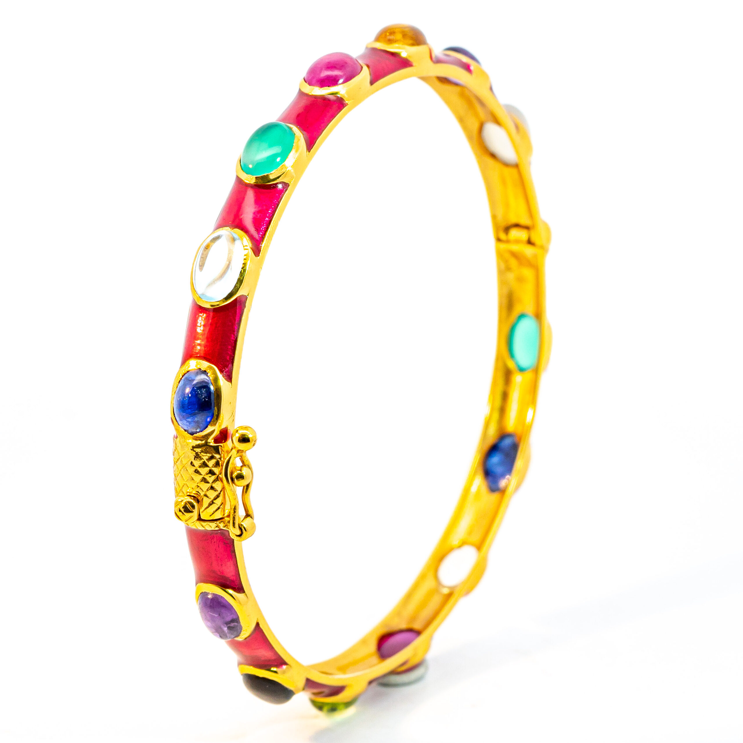 Sterling silver jewelry with 22k gold plated, natural stone and enamel.