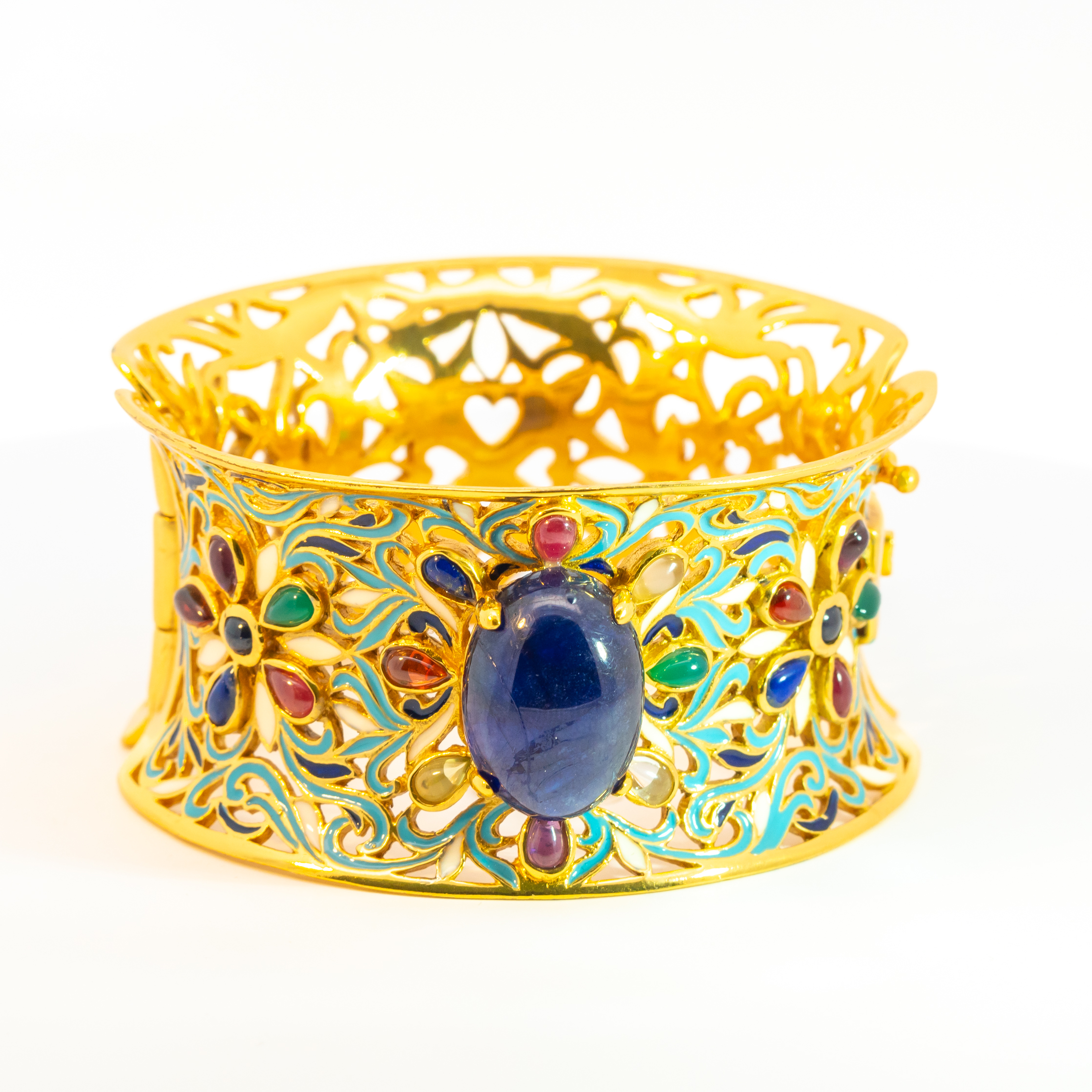 Sterling silver jewelry with 22k gold plated, natural stone and enamel.