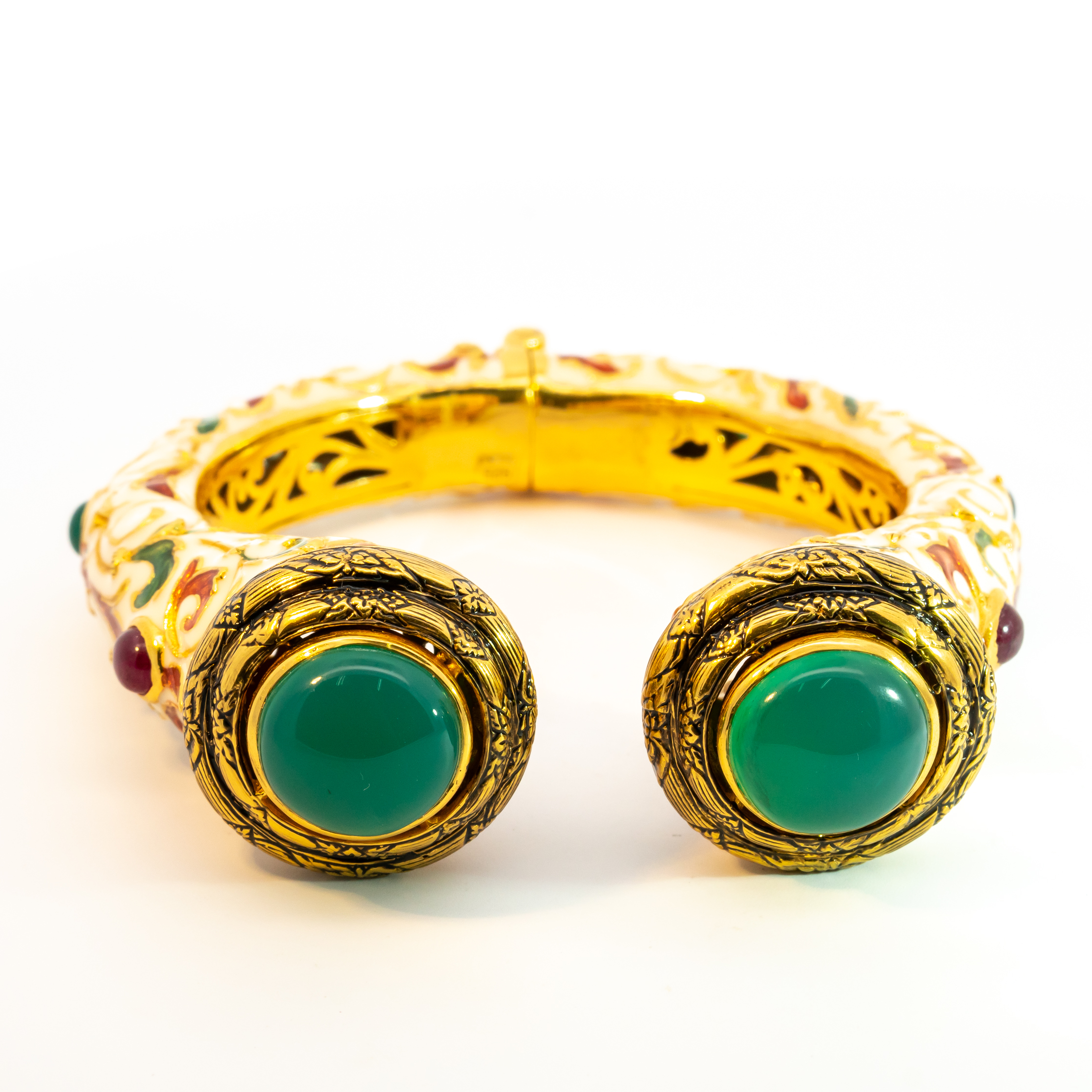 Sterling silver jewelry with 22k gold plated, natural stone and enamel.