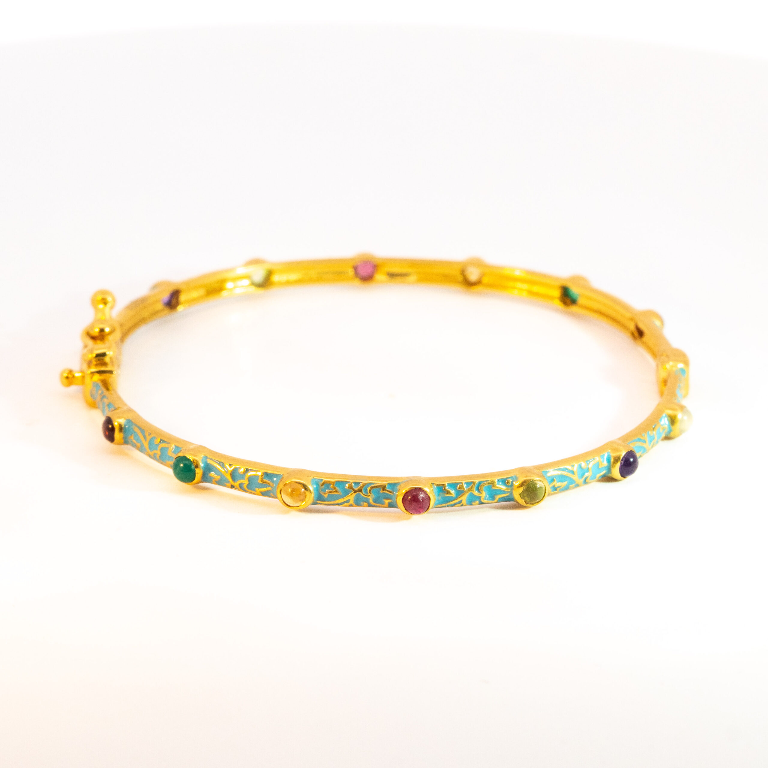 Sterling silver jewelry with 22k gold plated, natural stone and enamel.