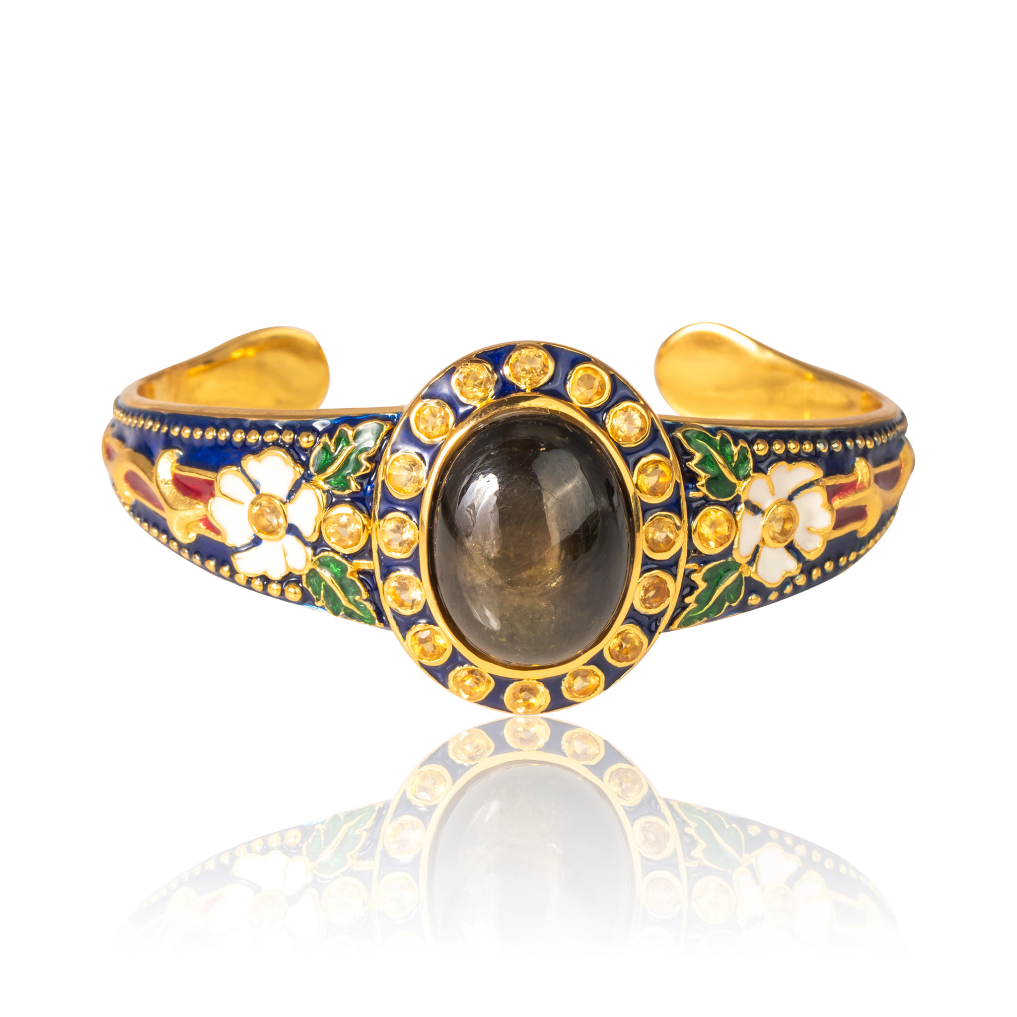Sterling silver jewelry with 22k gold plated, natural stone and enamel.