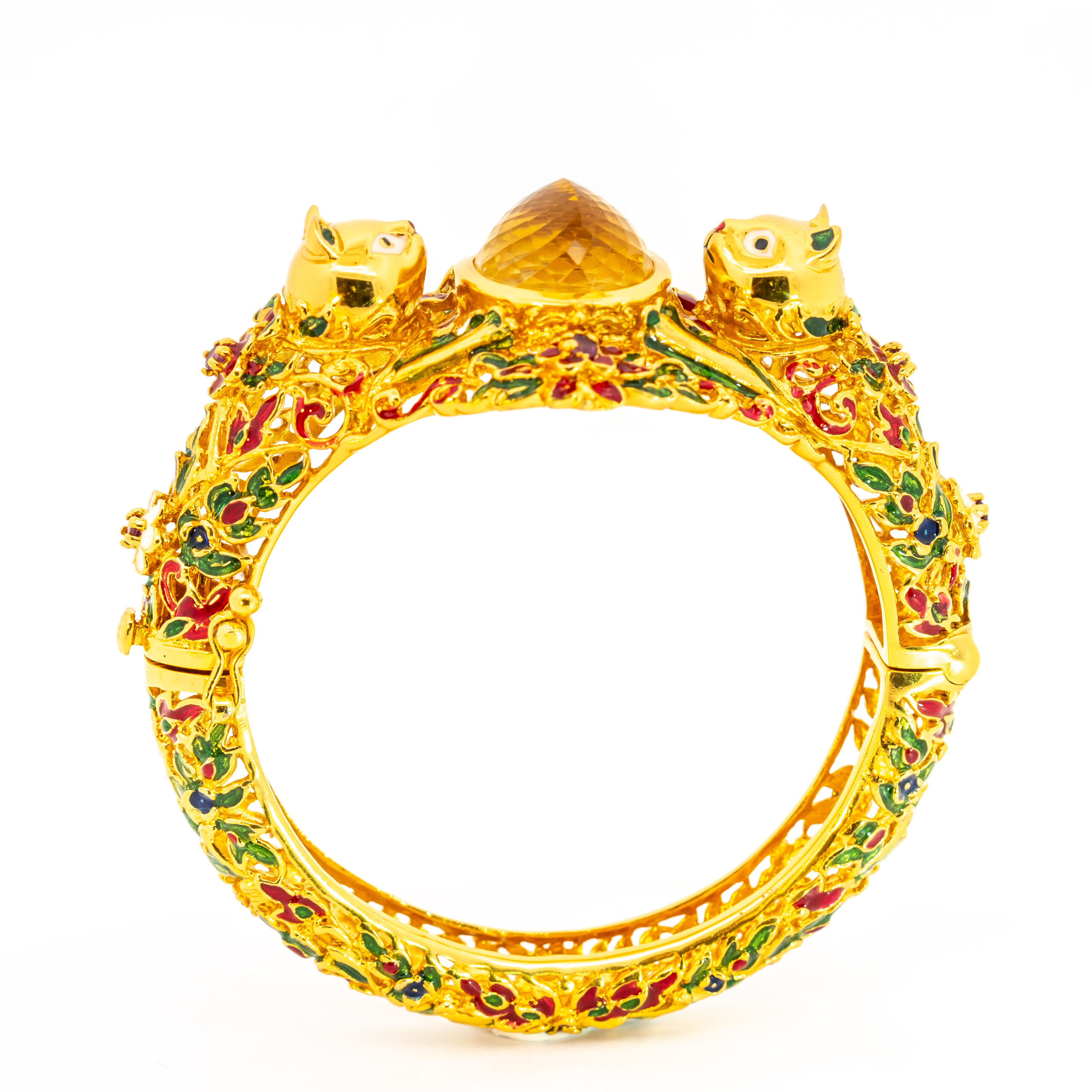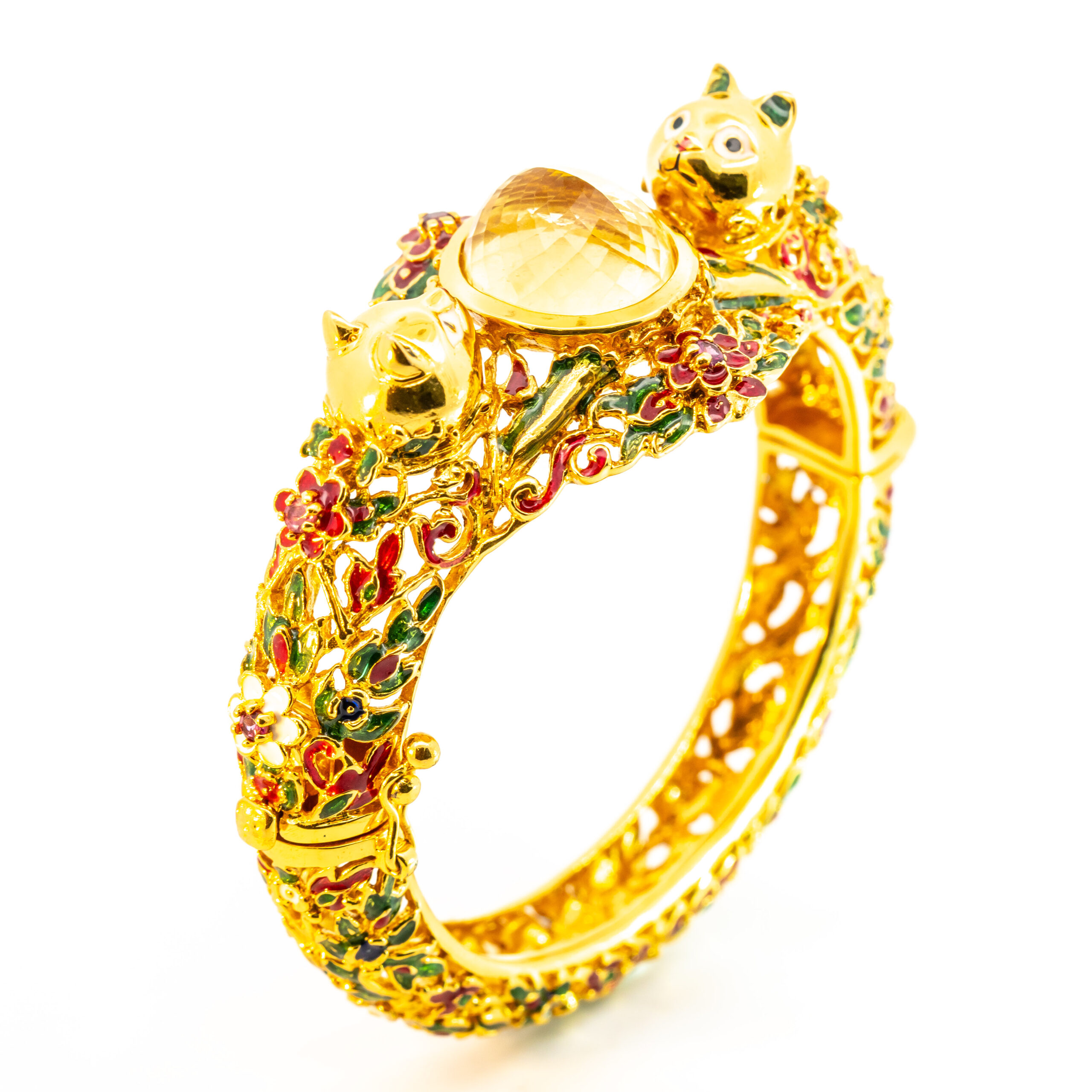 Sterling silver jewelry with 22k gold plated, natural stone and enamel.