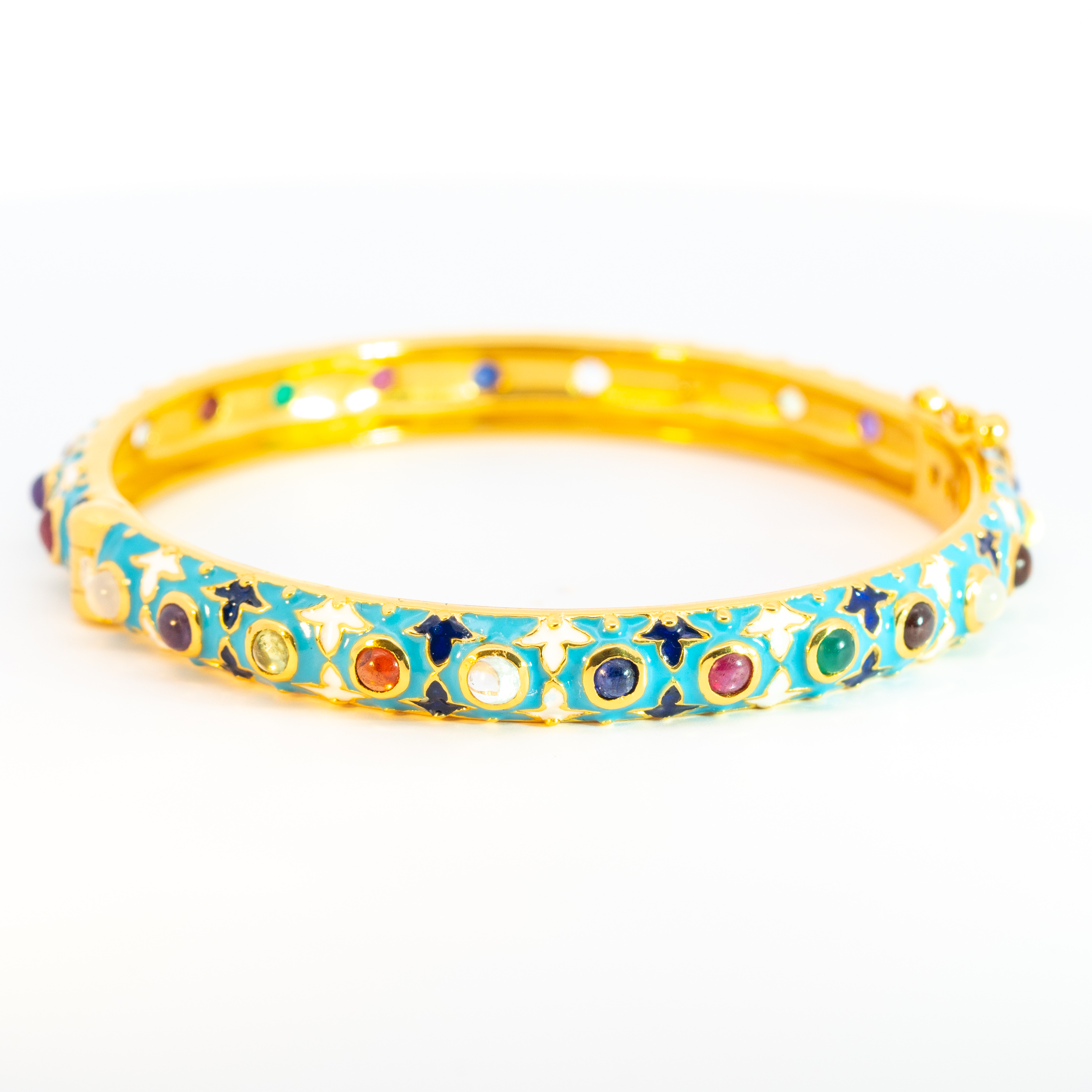 Sterling silver jewelry with 22k gold plated, natural stone and enamel.