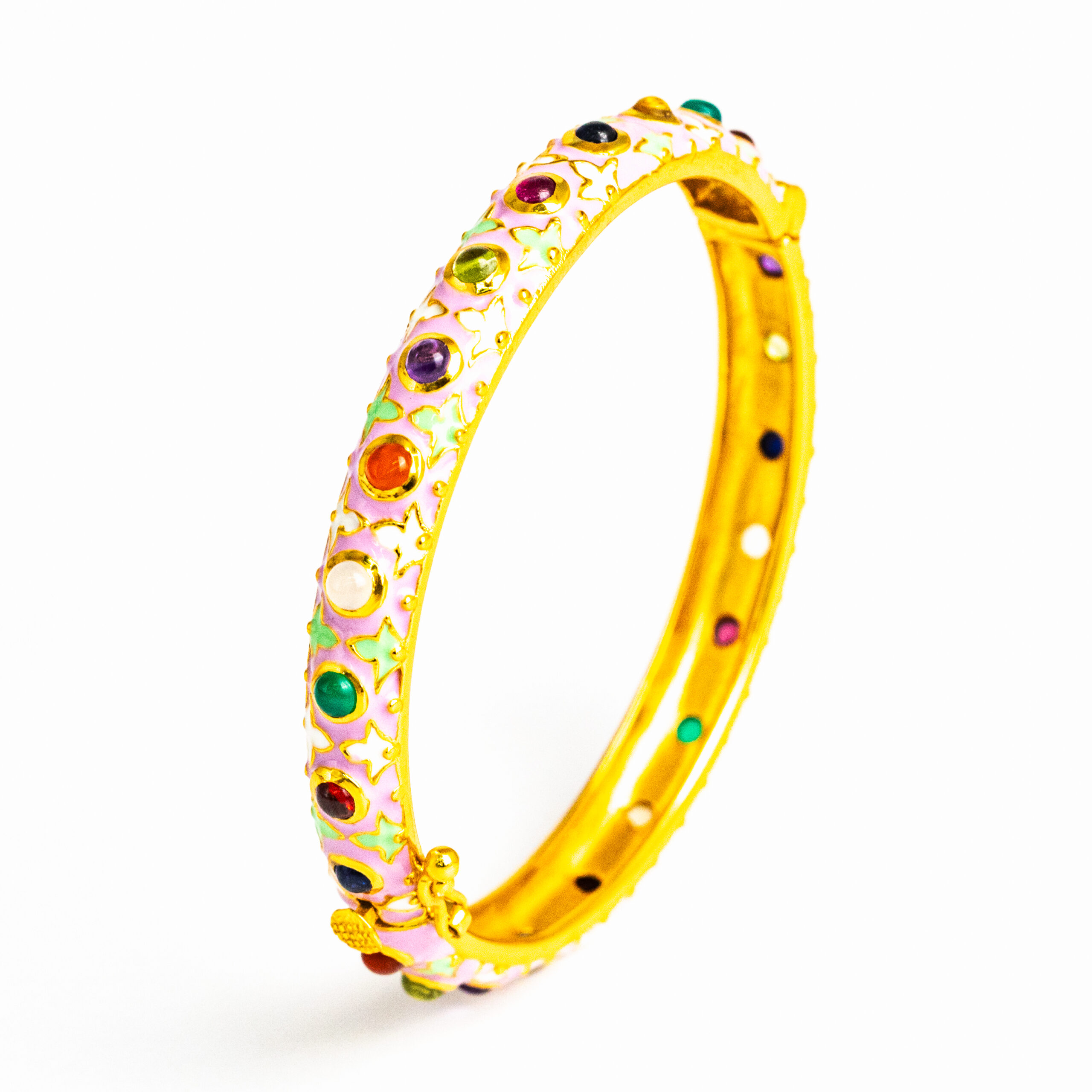 Sterling silver jewelry with 22k gold plated, natural stone and enamel.