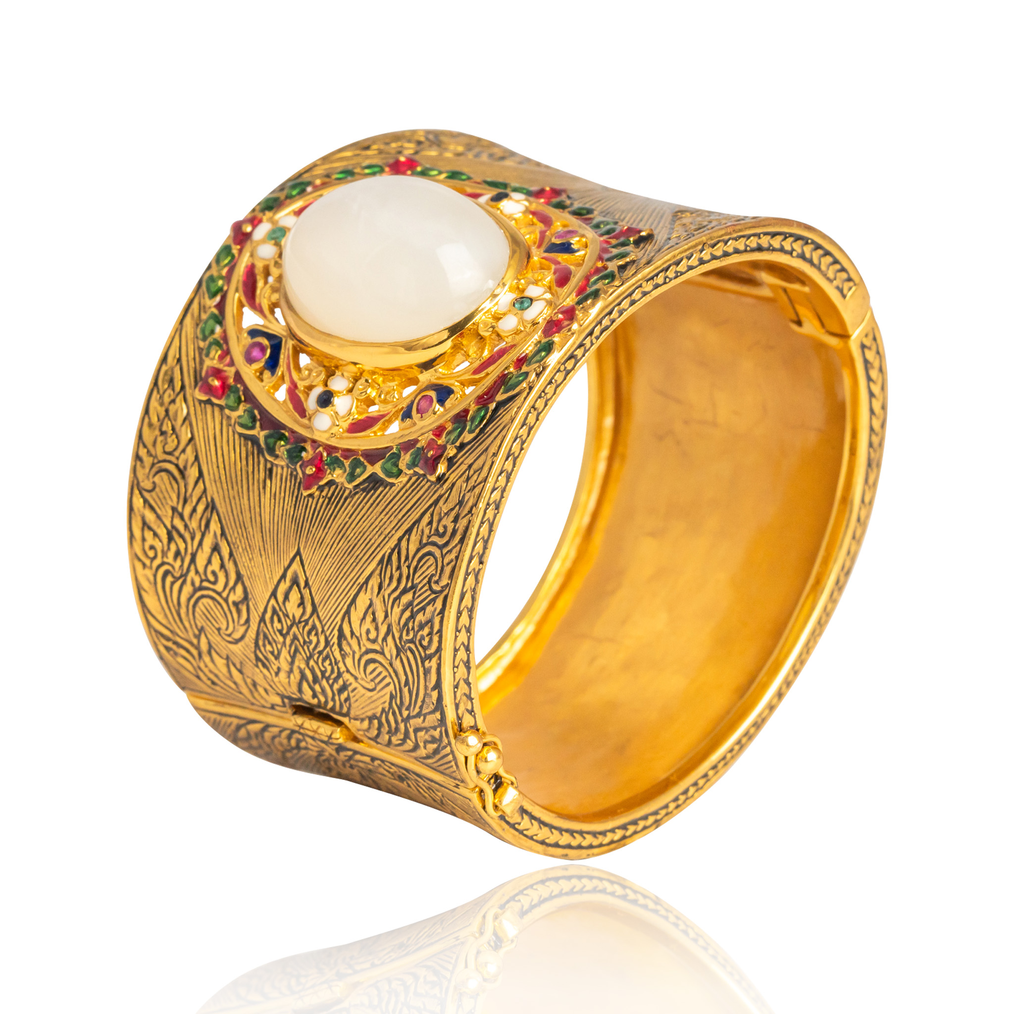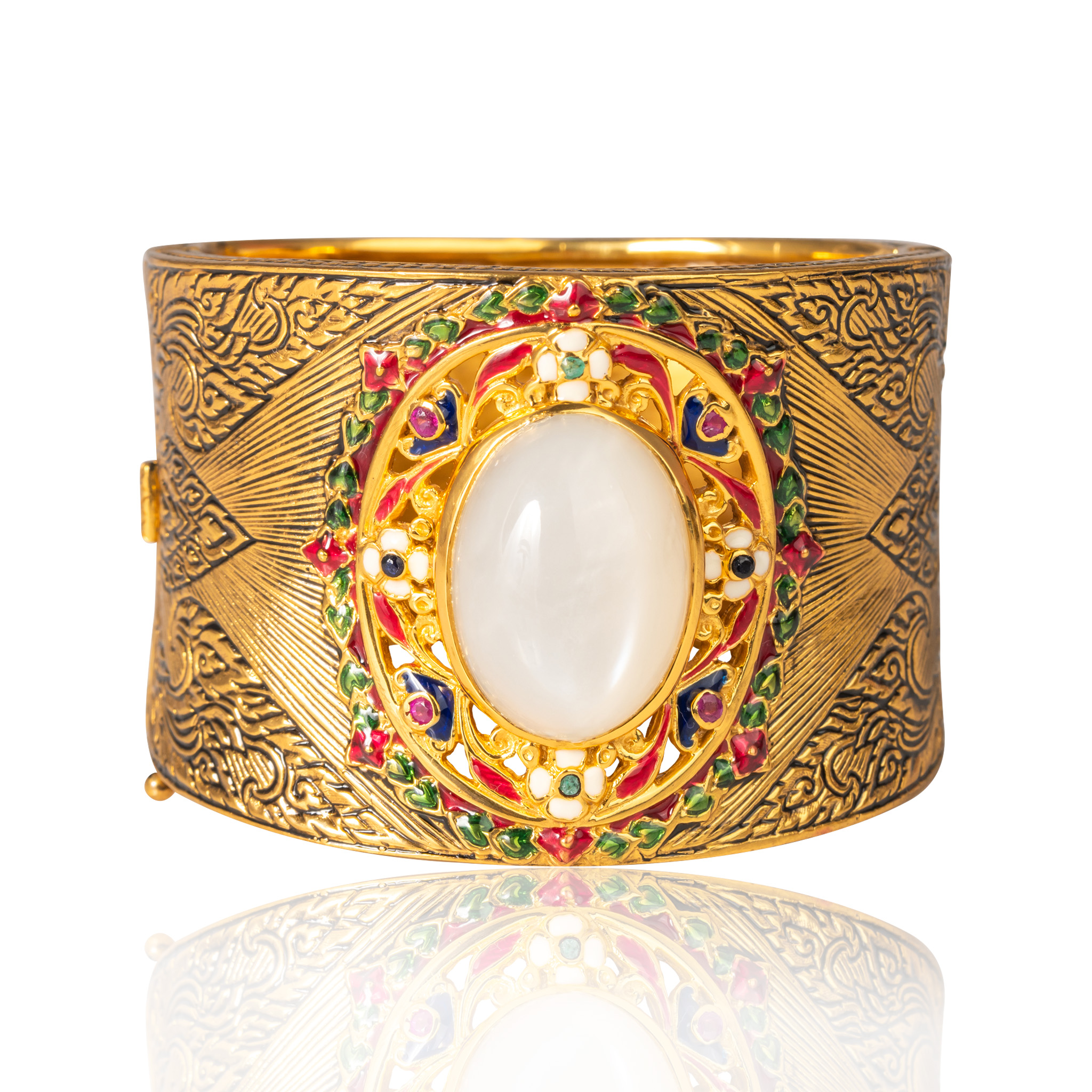 Sterling silver jewelry with 22k gold plated, natural stone and enamel.