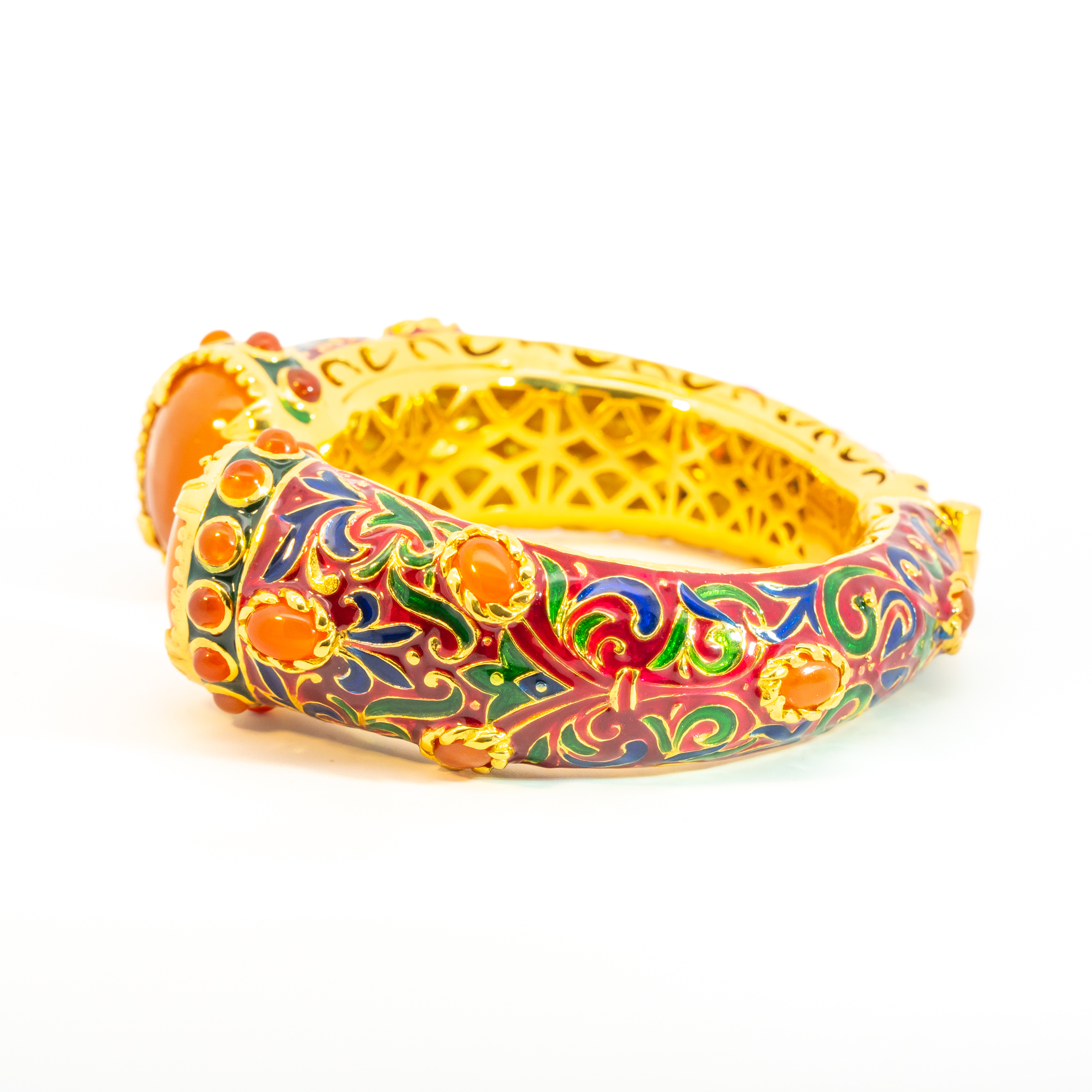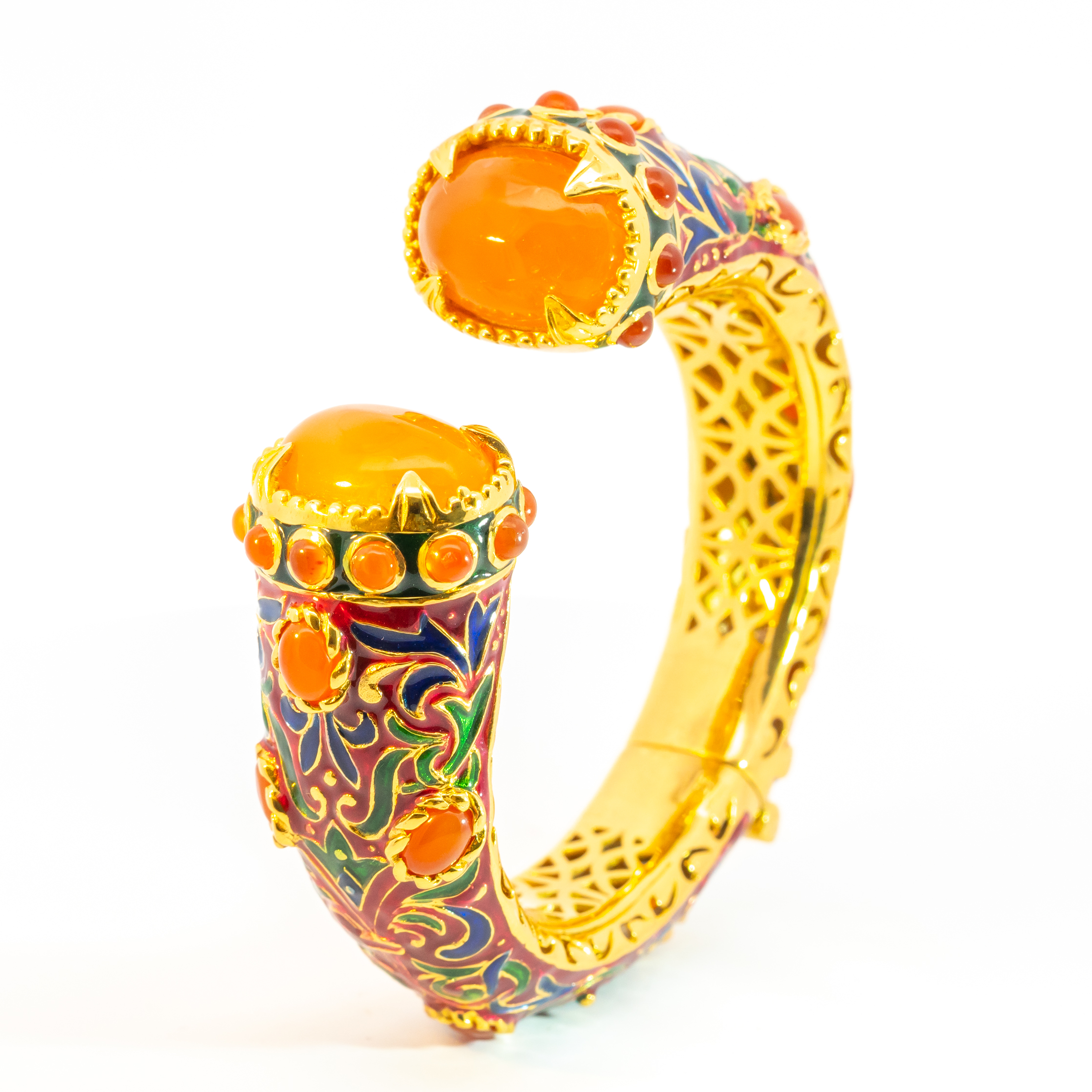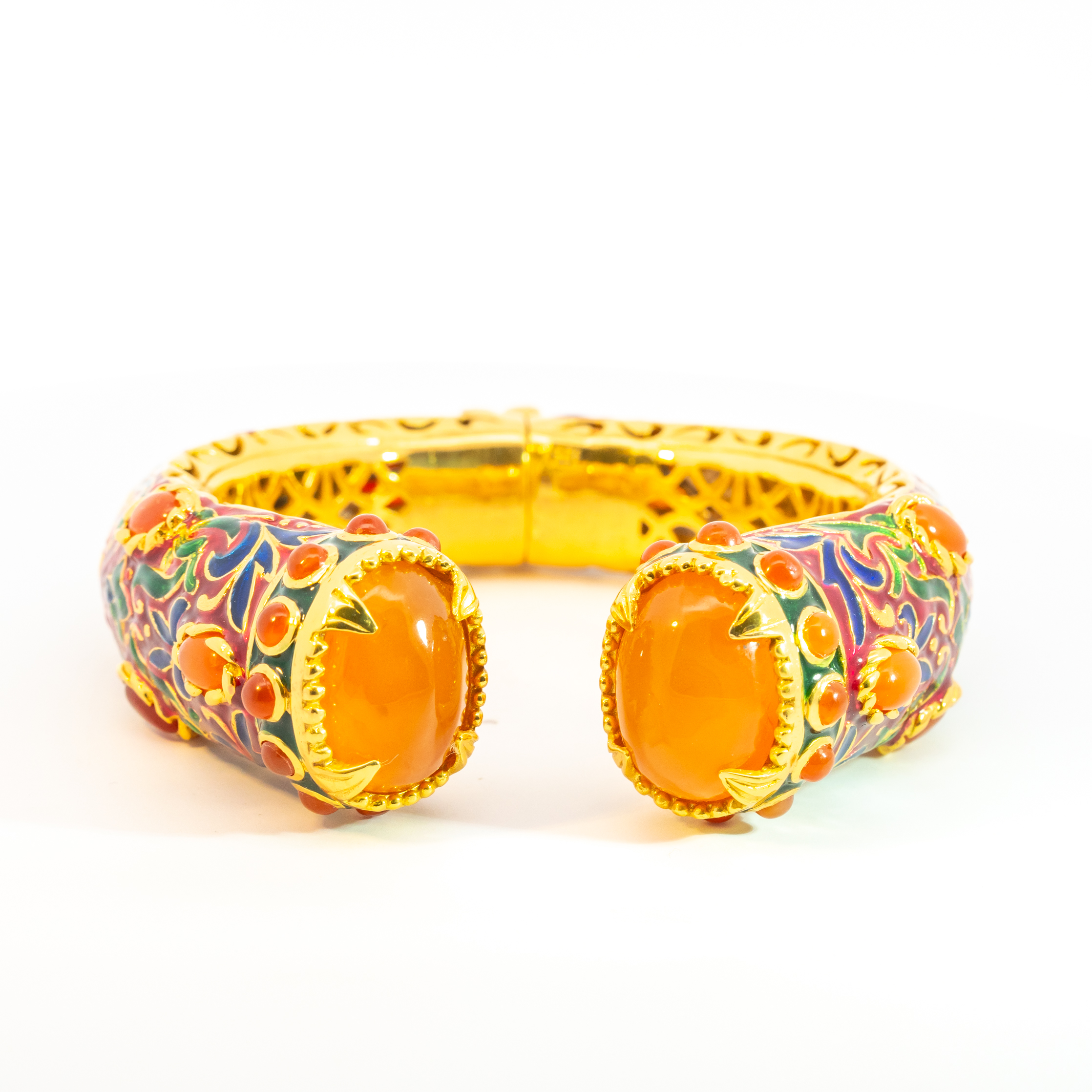 Sterling silver jewelry with 22k gold plated, natural stone and enamel.