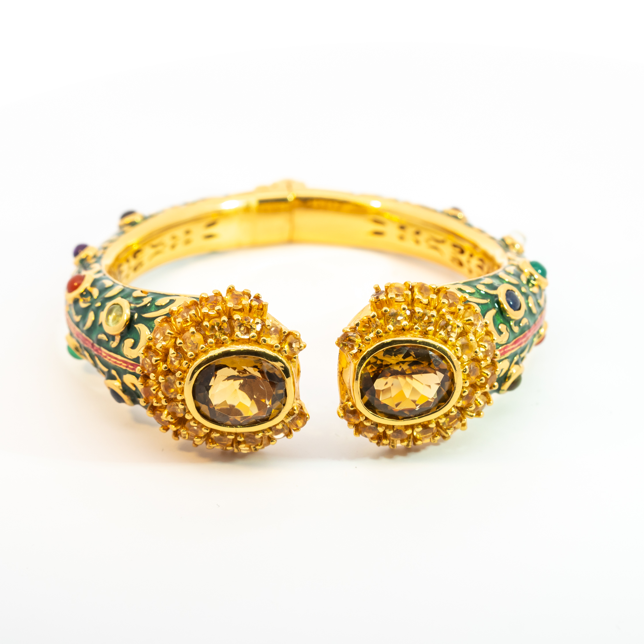 Sterling silver jewelry with 22k gold plated, natural stone and enamel.