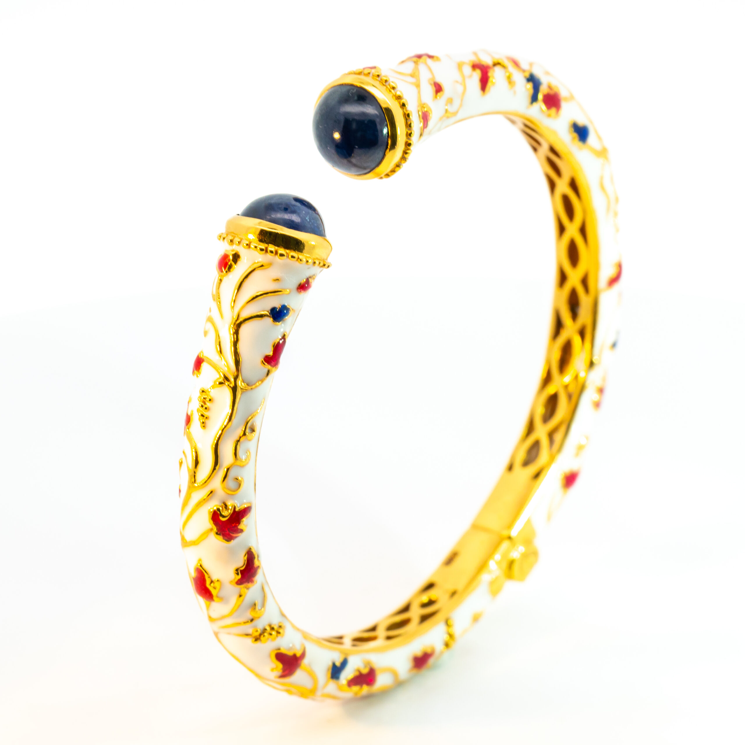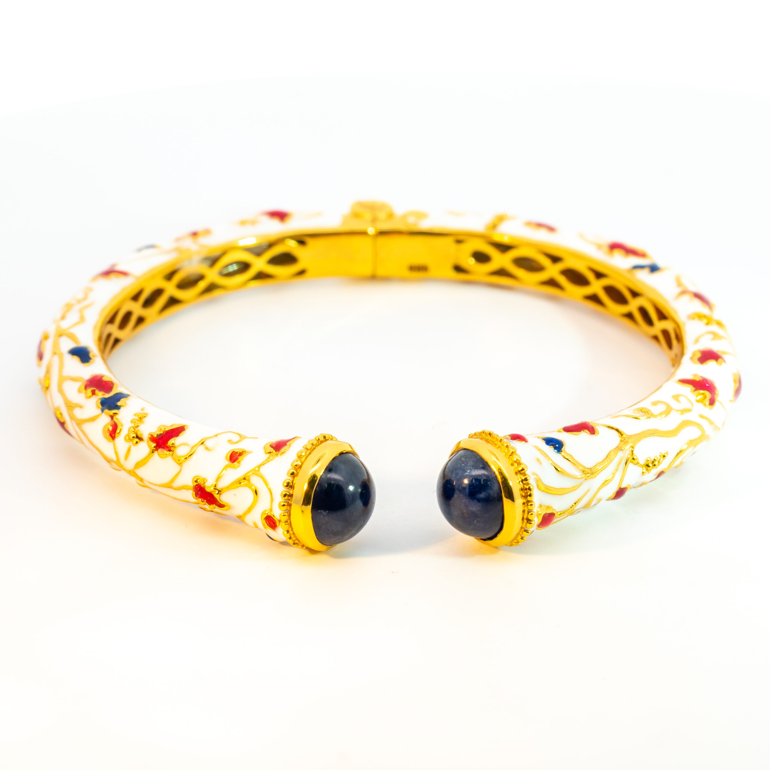 Sterling silver jewelry with 22k gold plated, natural stone and enamel.