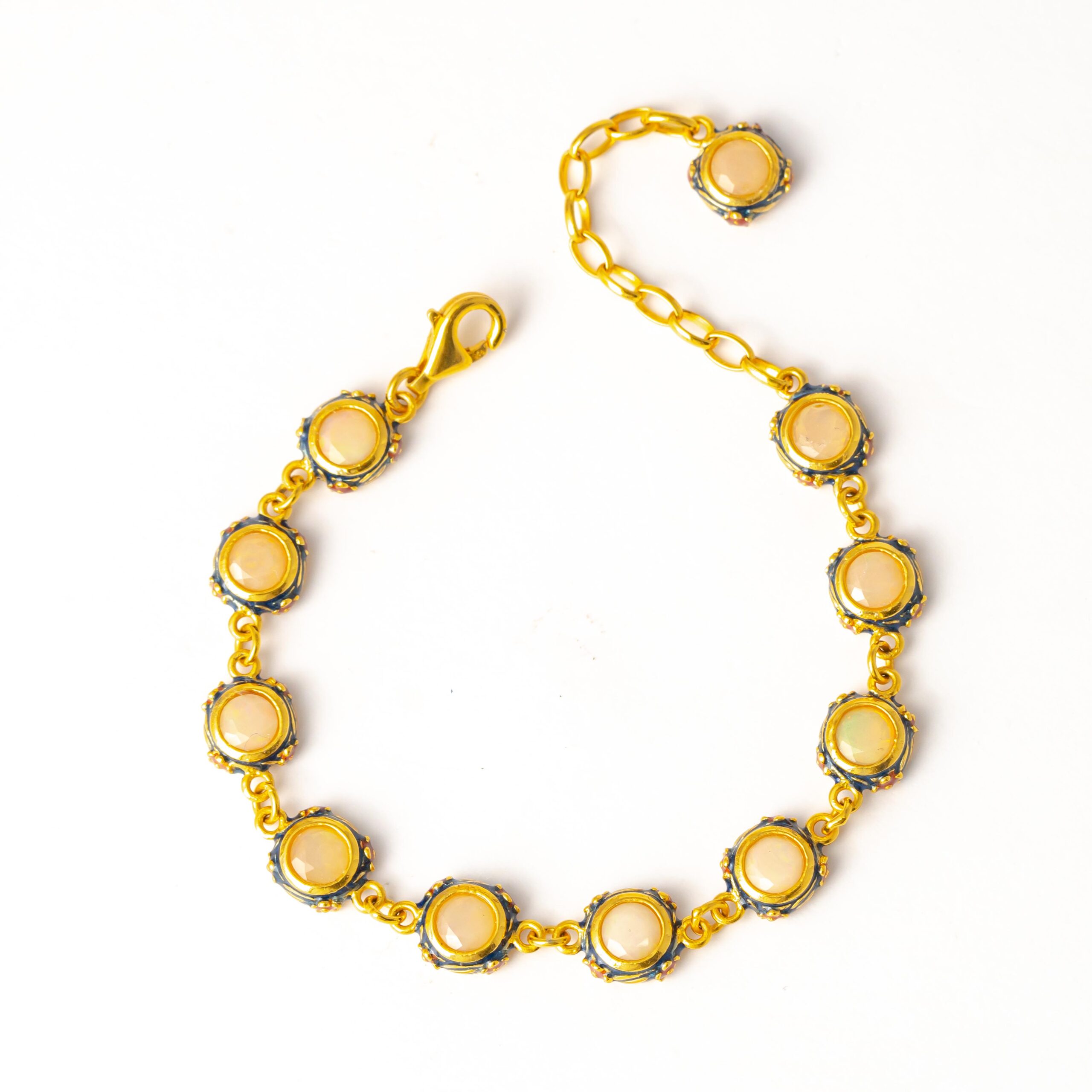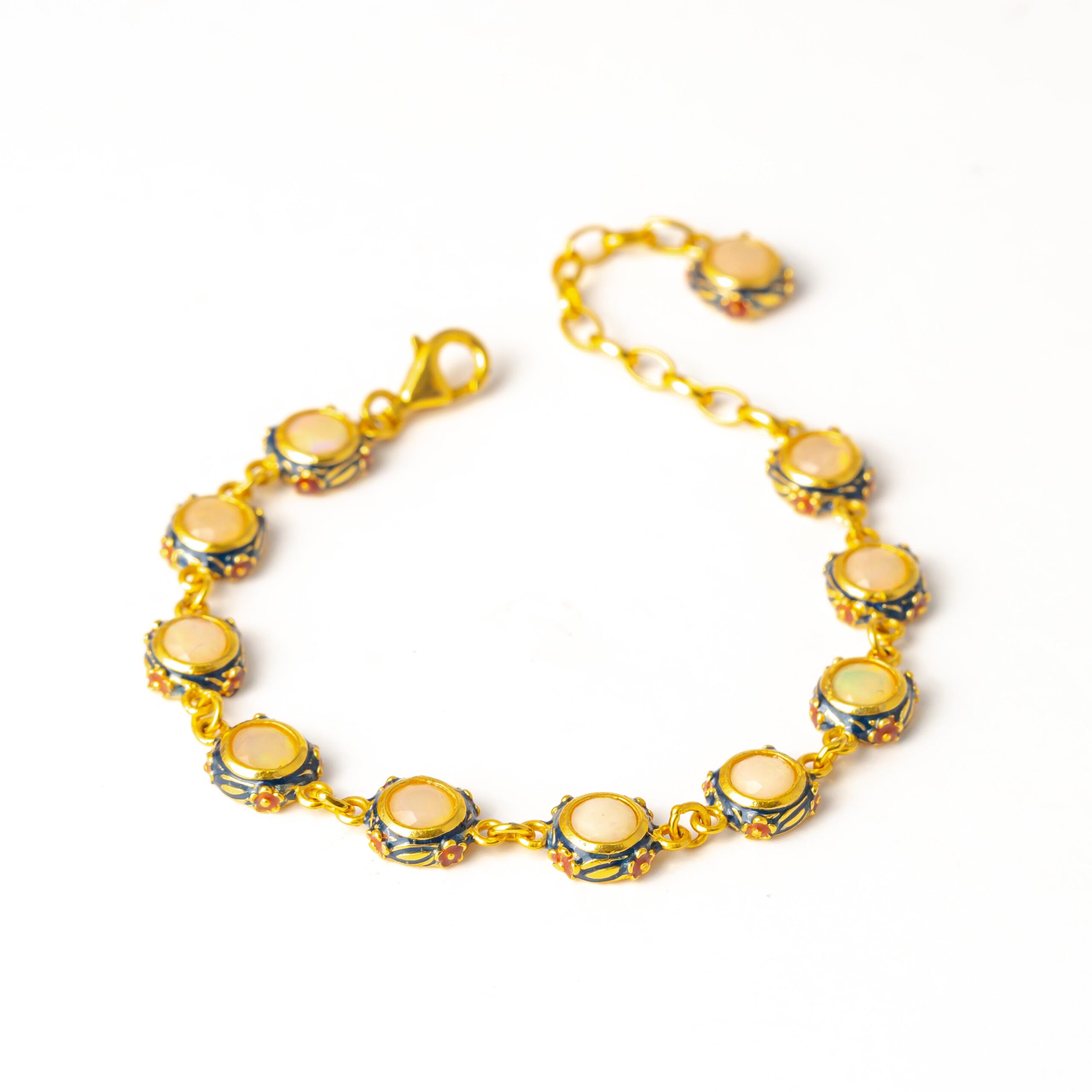 Sterling silver jewelry with 22k gold plated, natural stone and enamel.