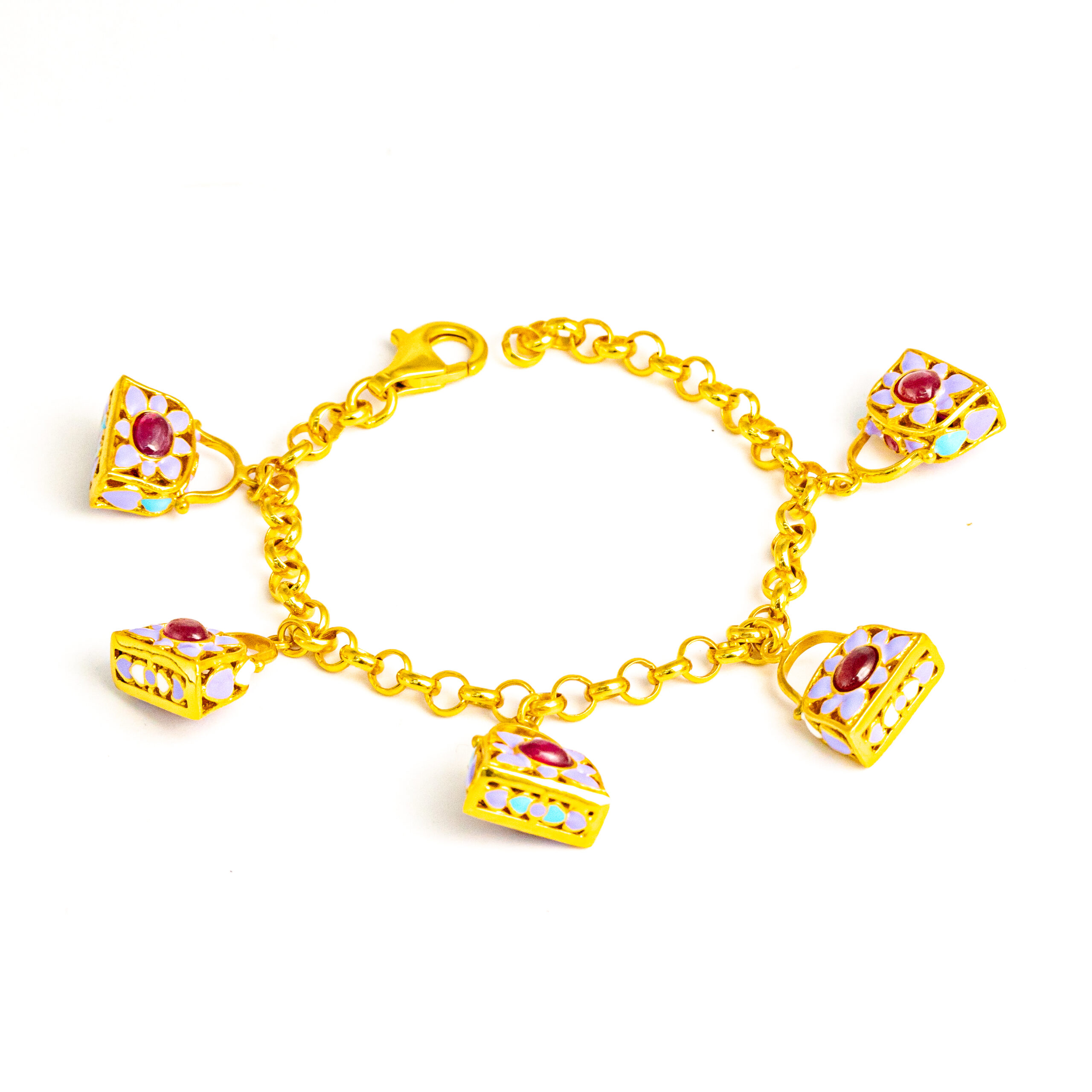 Sterling silver jewelry with 22k gold plated, natural stone and enamel.
