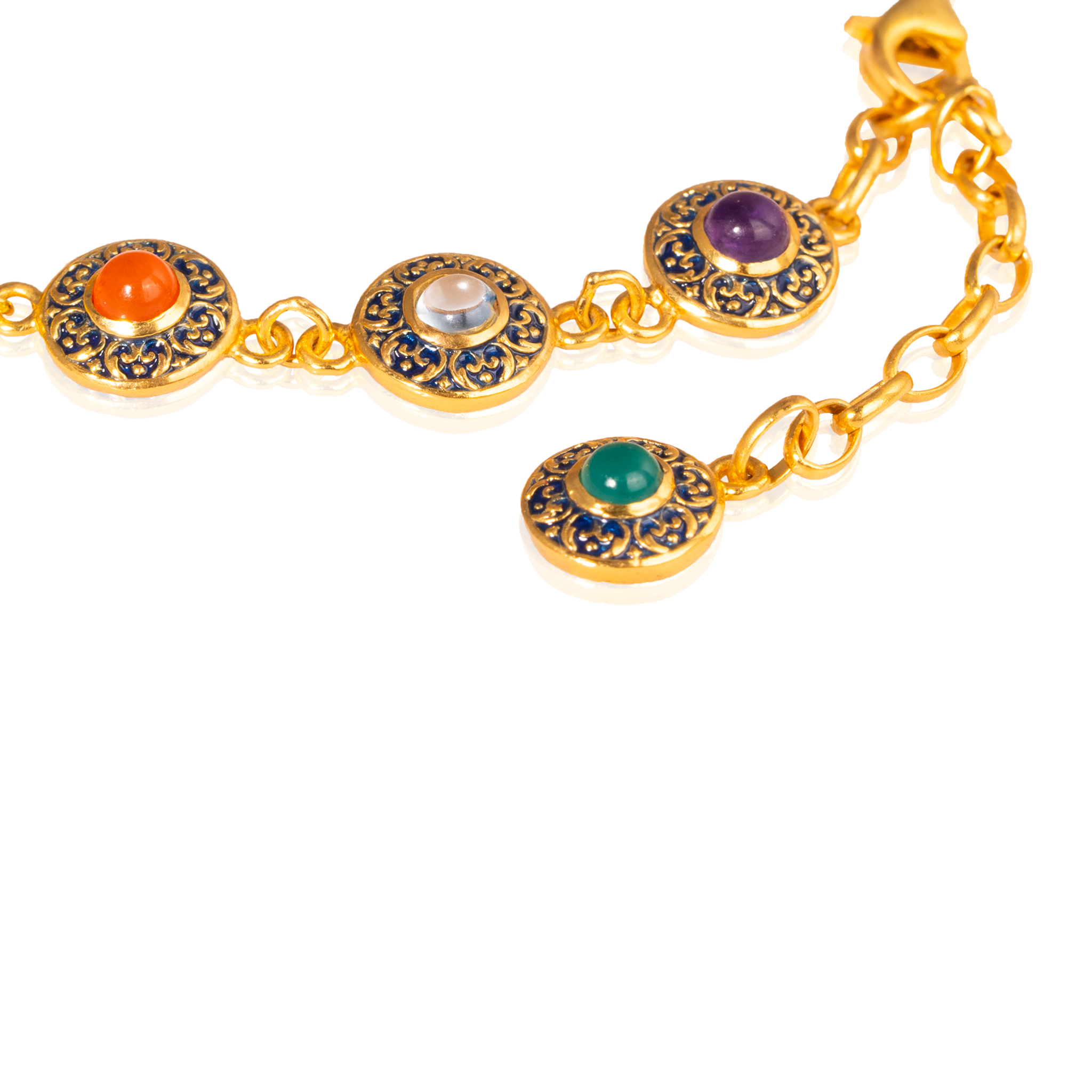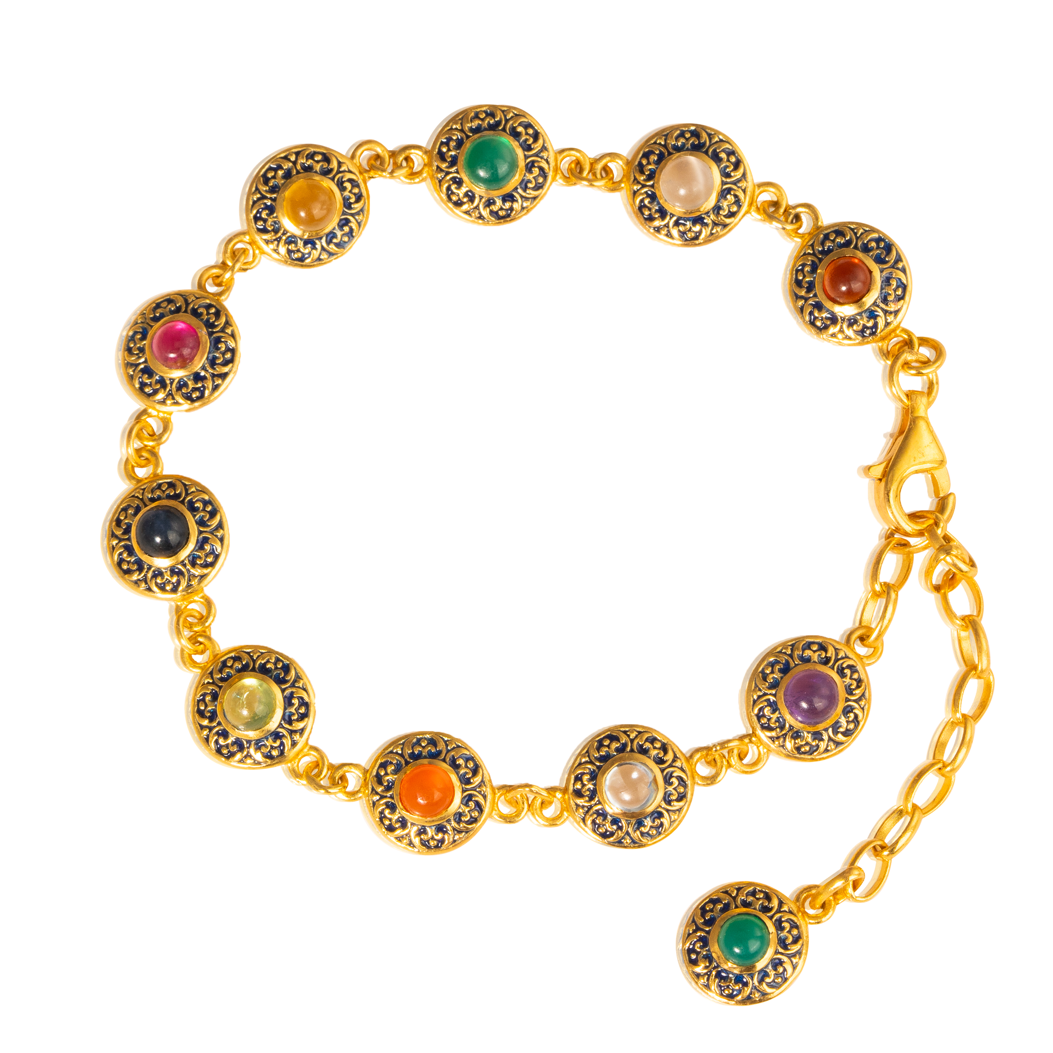 Sterling silver jewelry with 22k gold plated, natural stone and enamel.