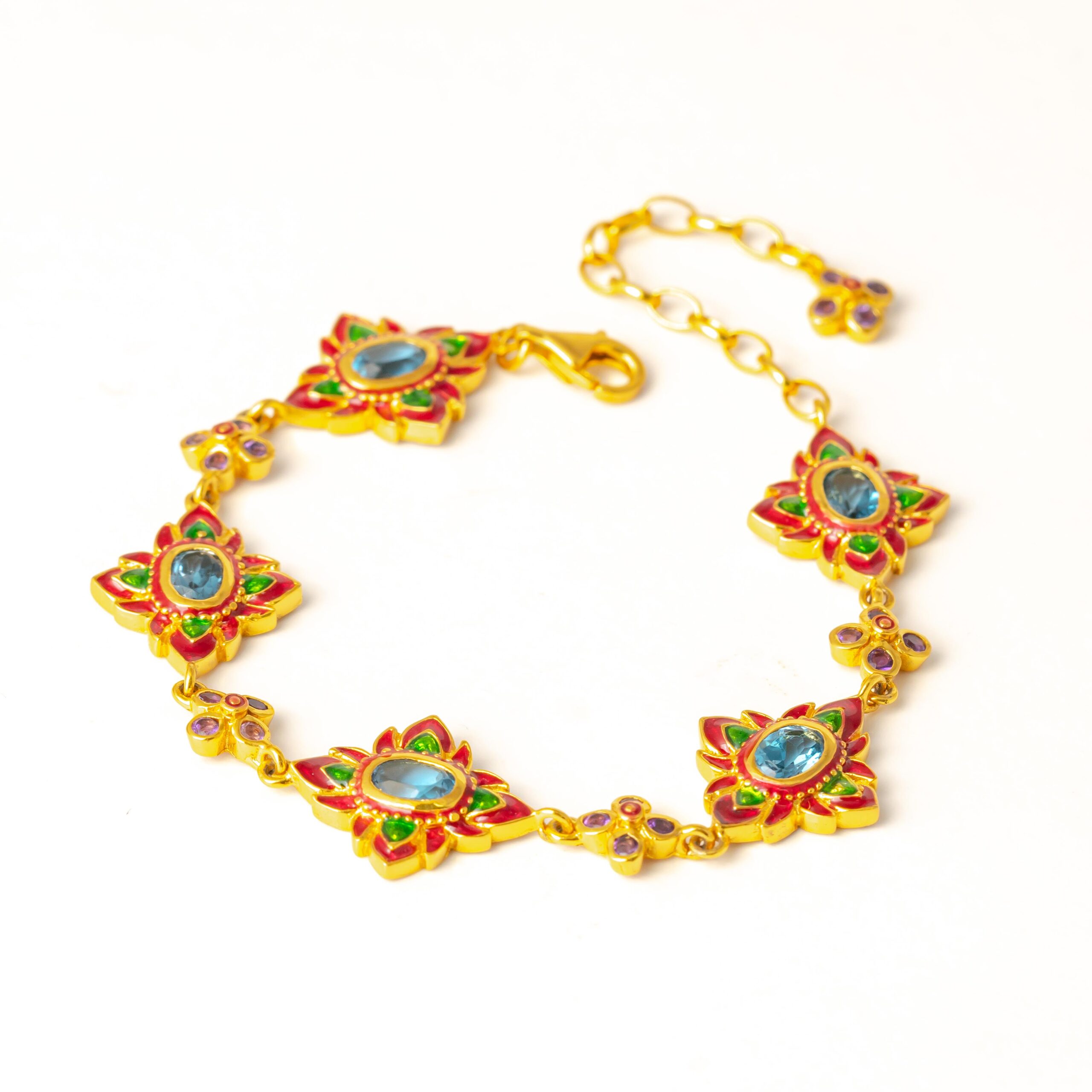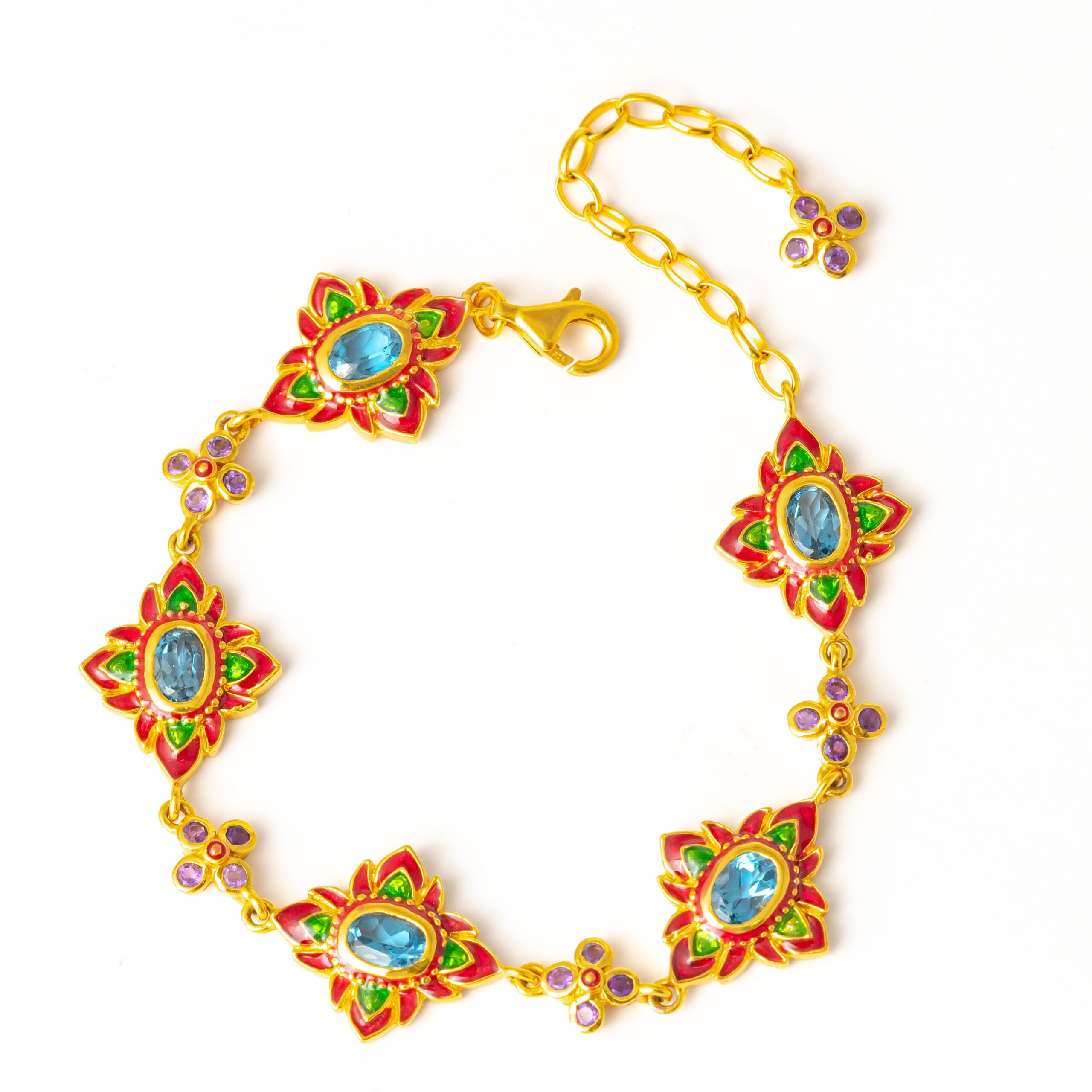 Sterling silver jewelry with 22k gold plated, natural stone and enamel.
