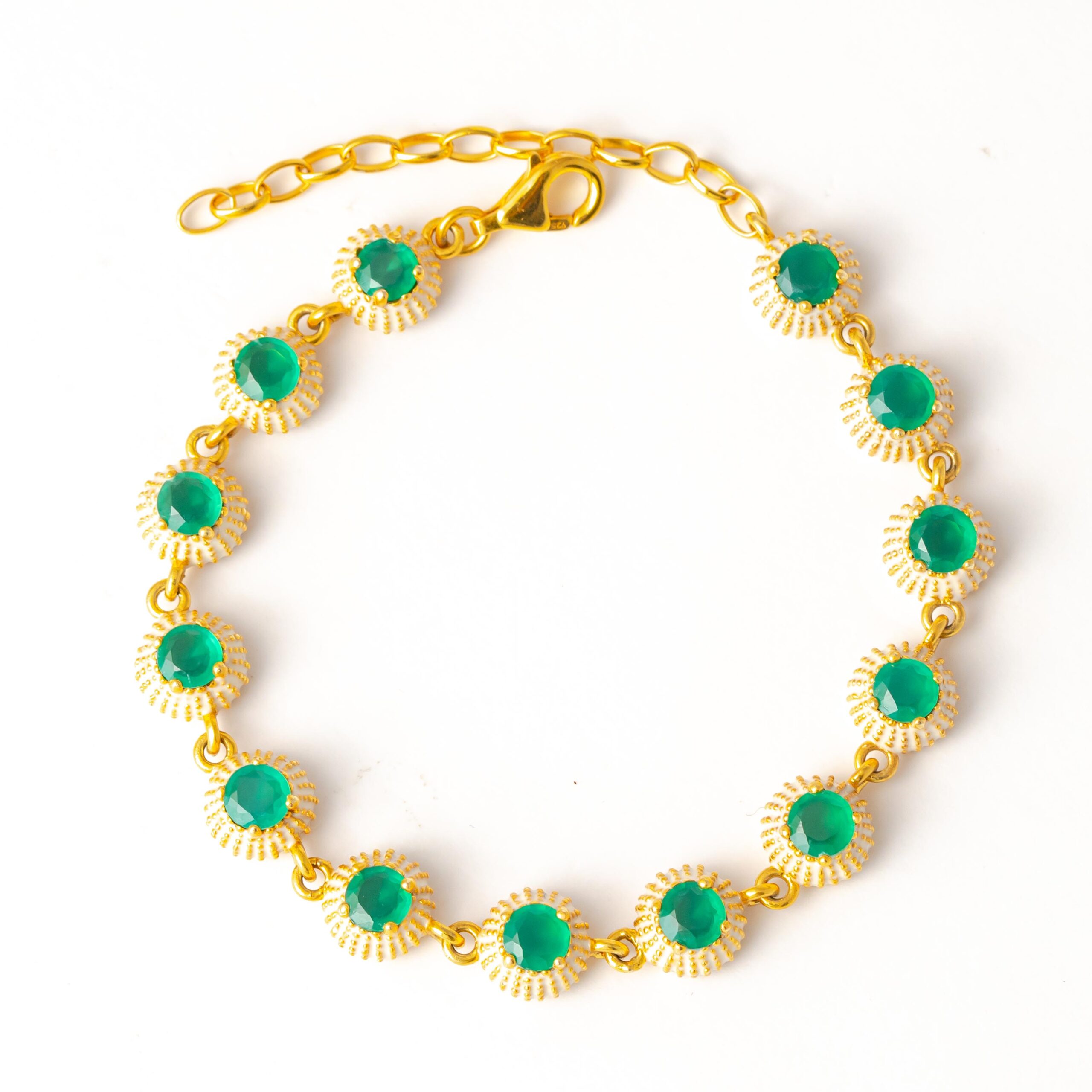 Sterling silver jewelry with 22k gold plated, natural stone and enamel.