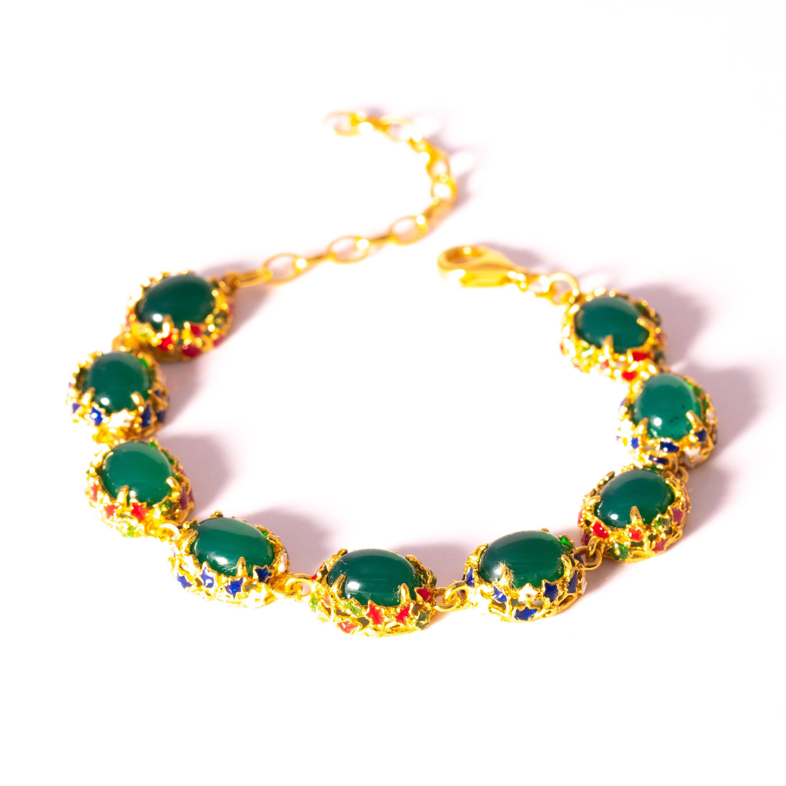 Sterling silver jewelry with 22k gold plated, natural stone and enamel.