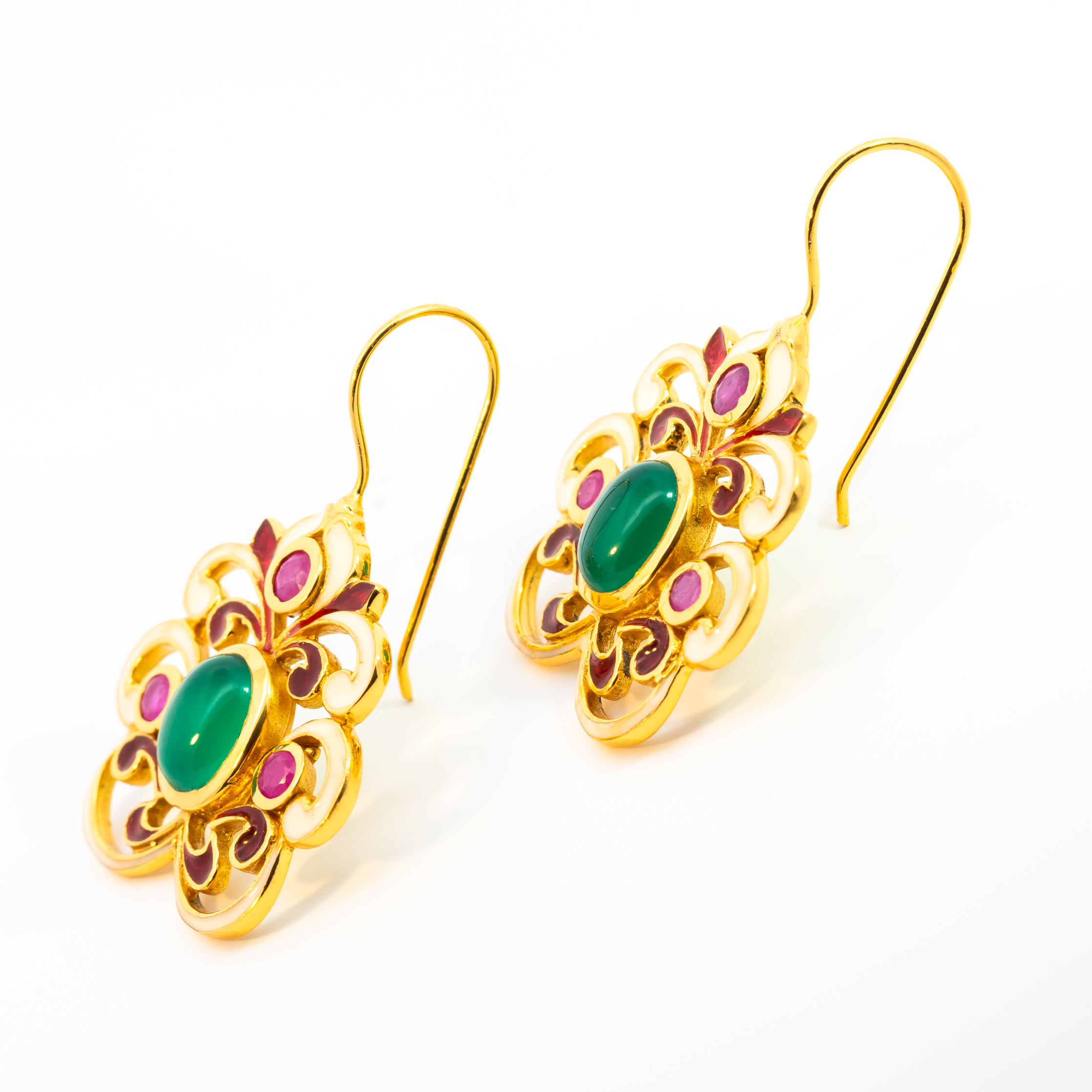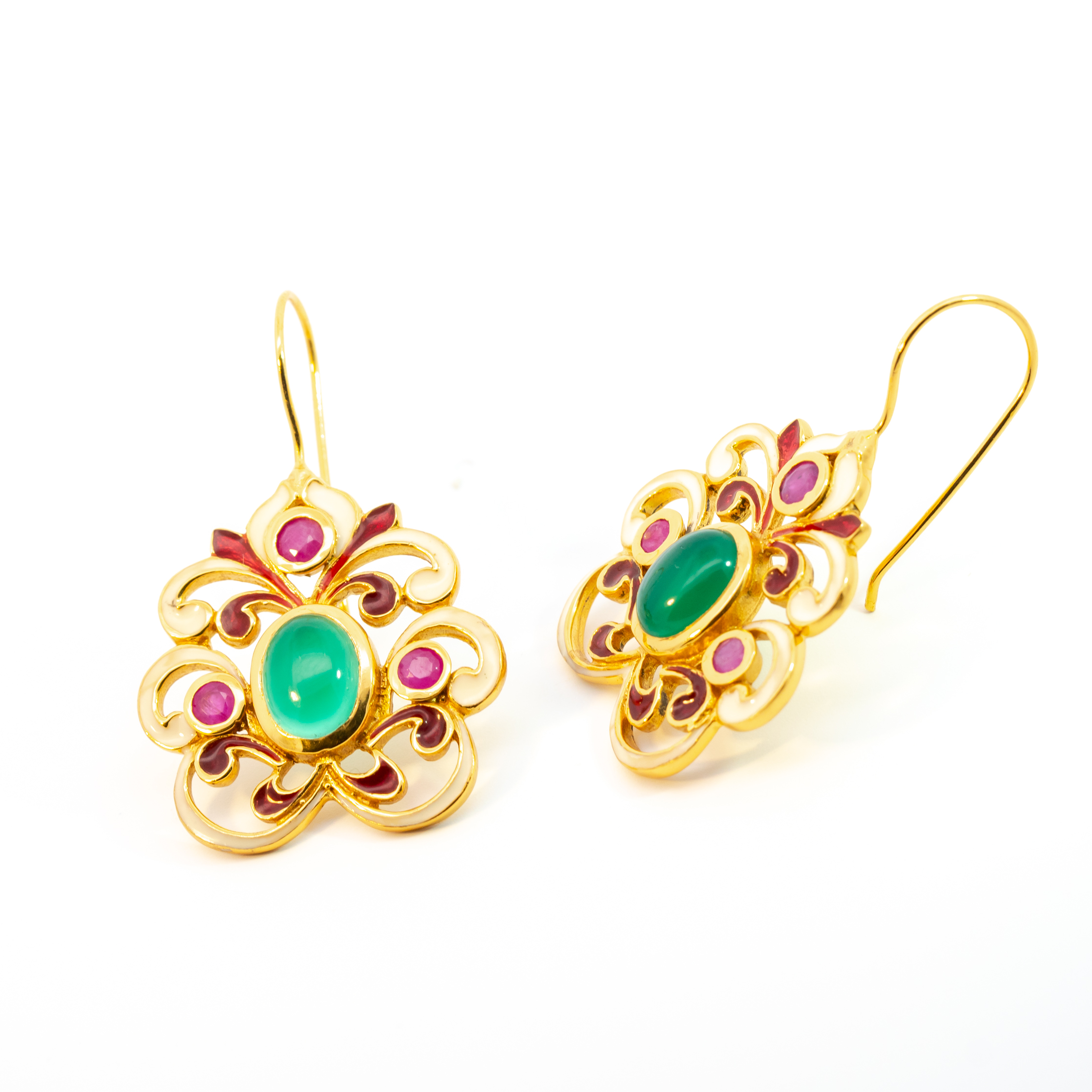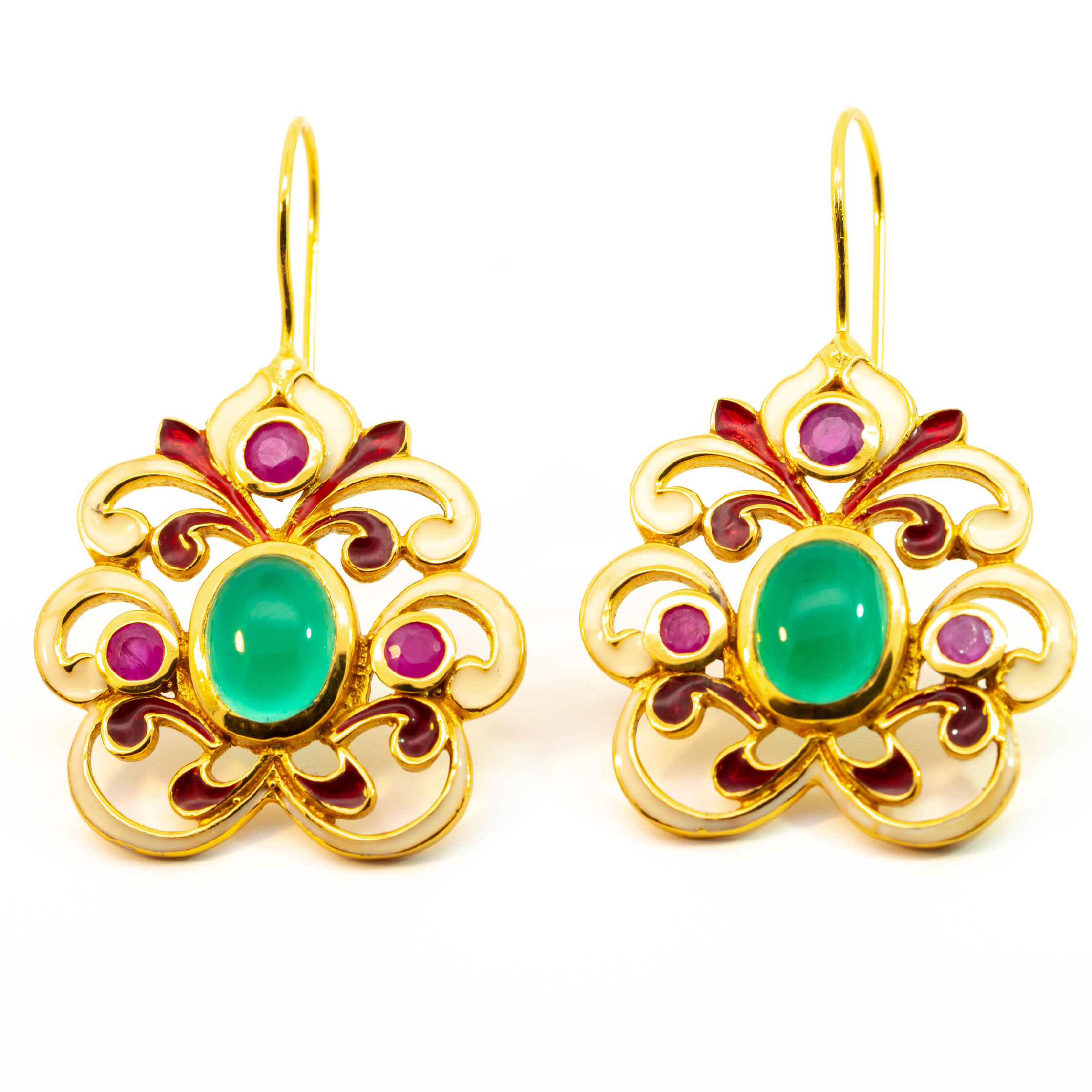 Sterling silver jewelry with 22k gold plated, natural stone and enamel.