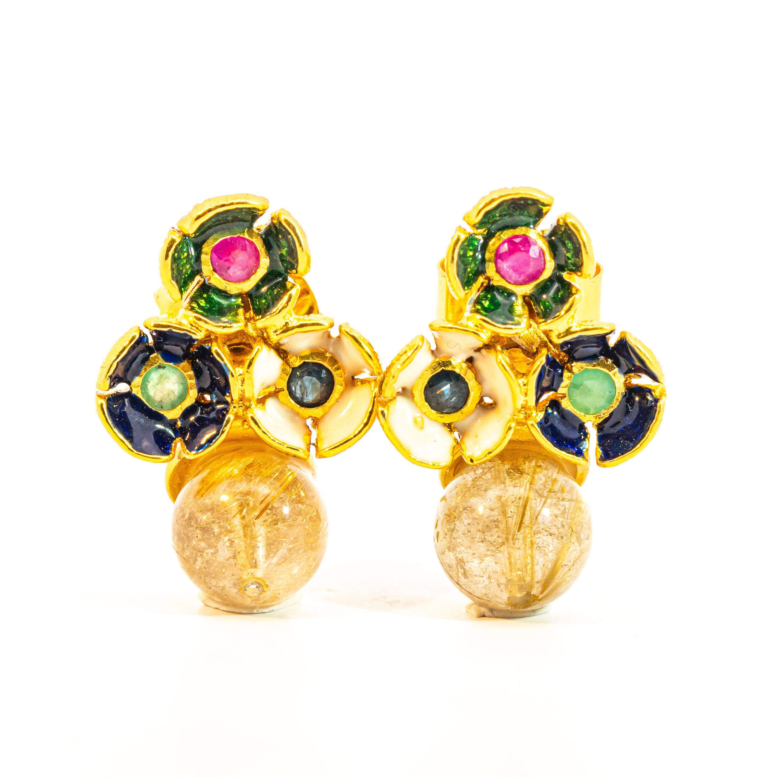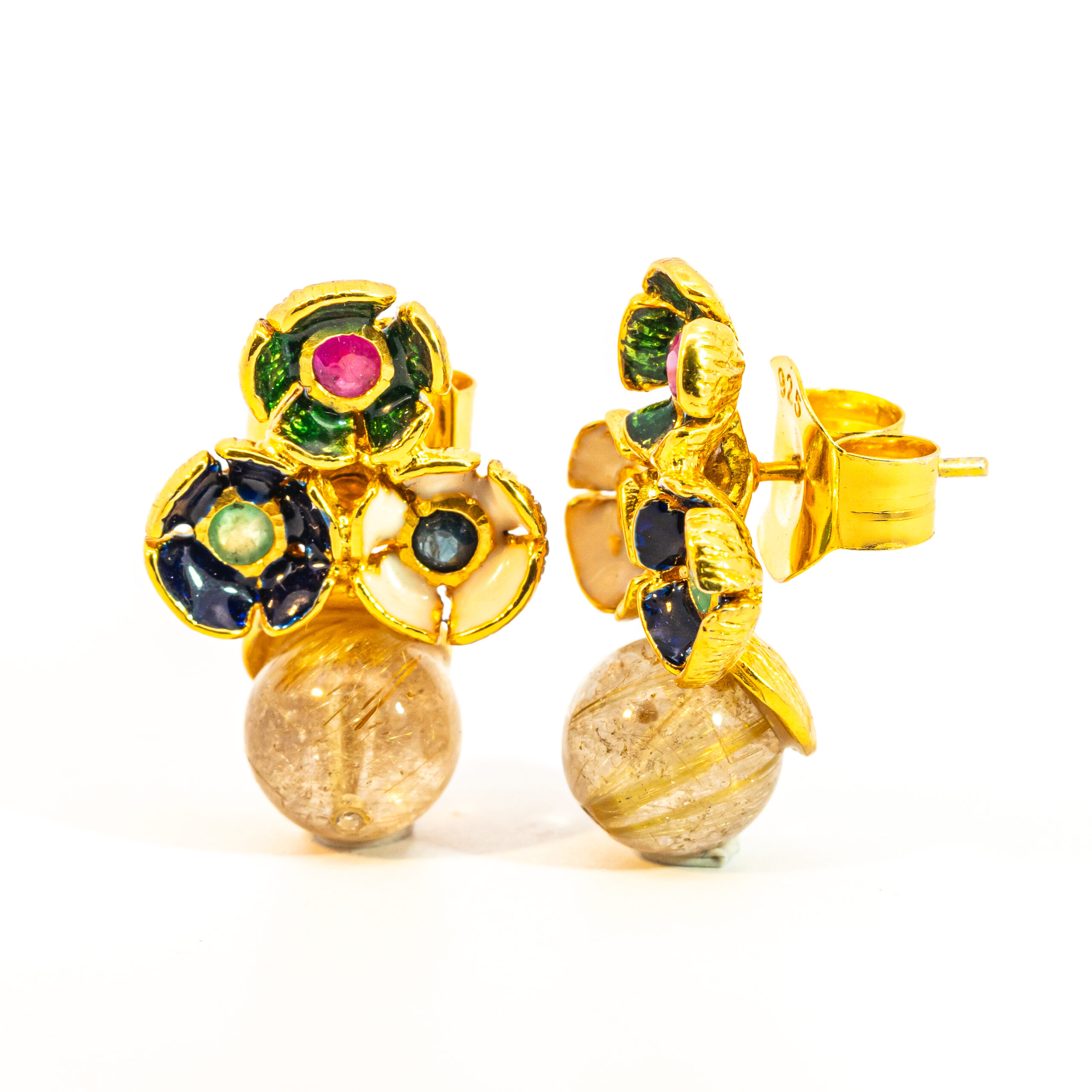 Sterling silver jewelry with 22k gold plated, natural stone and enamel.