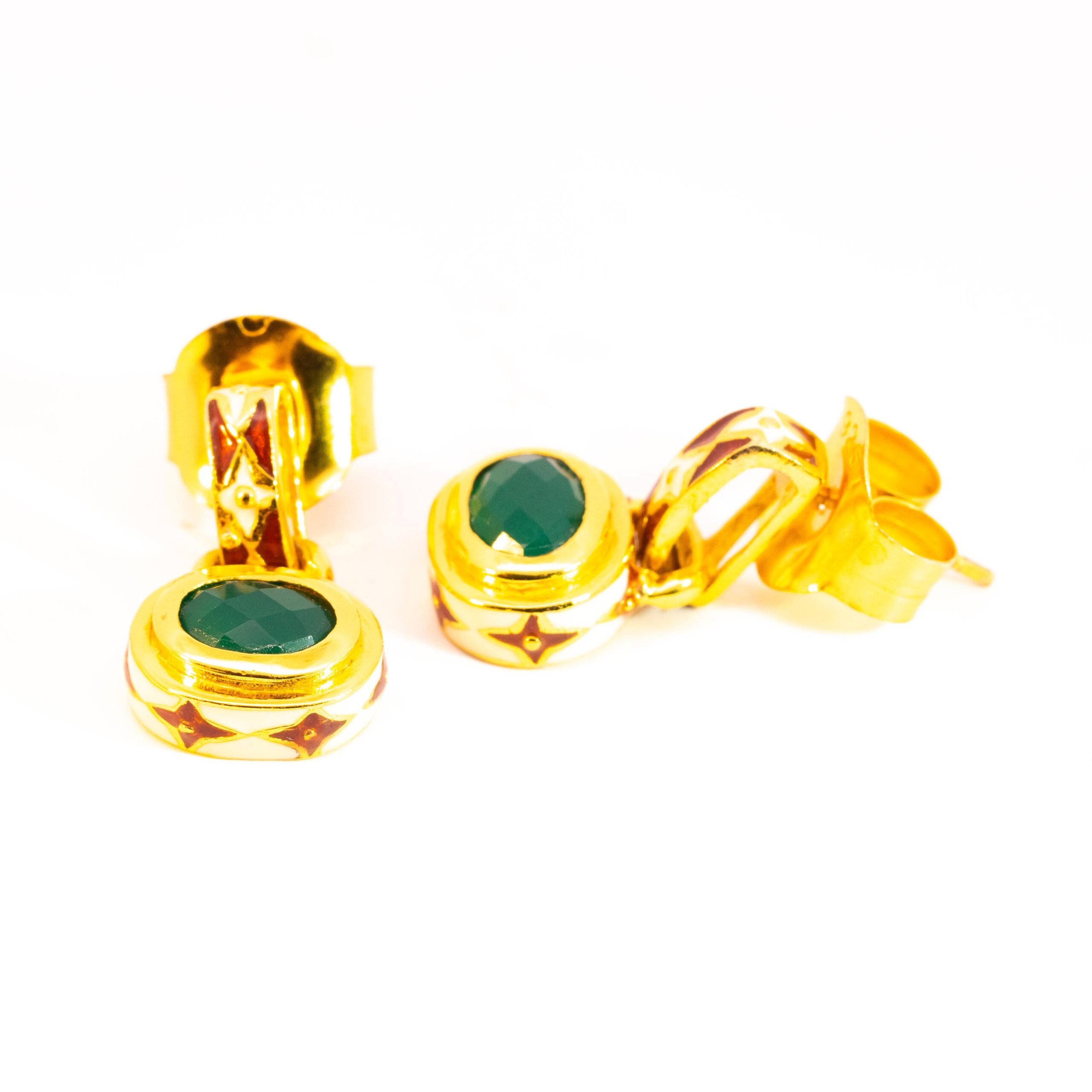 Sterling silver jewelry with 22k gold plated, natural stone and enamel.