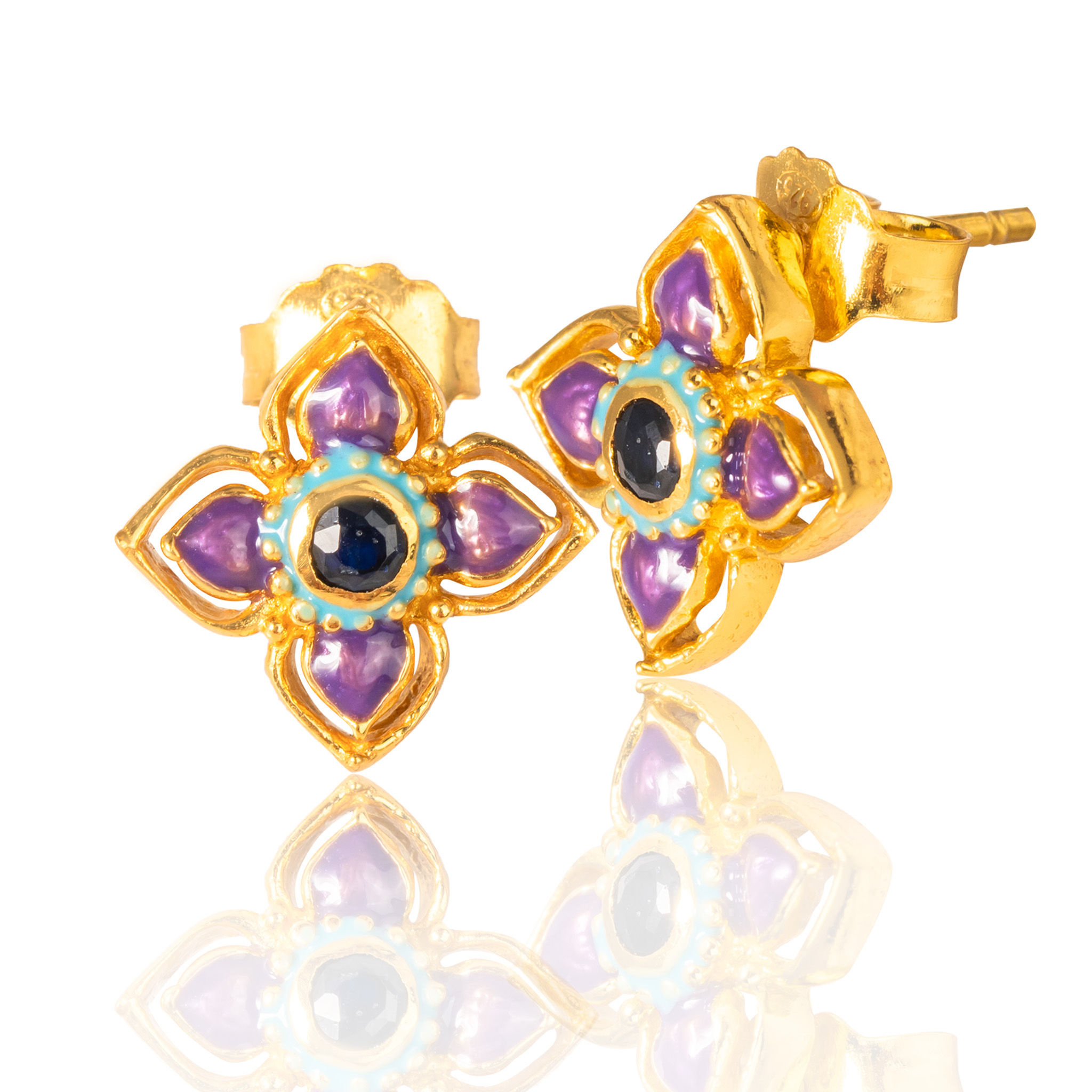 Sterling silver jewelry with 22k gold plated, natural stone and enamel.