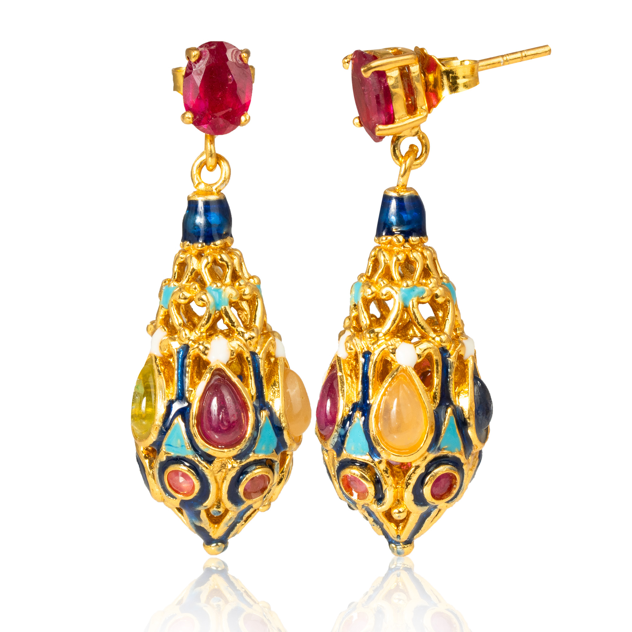 Sterling silver jewelry with 22k gold plated, natural stone and enamel.