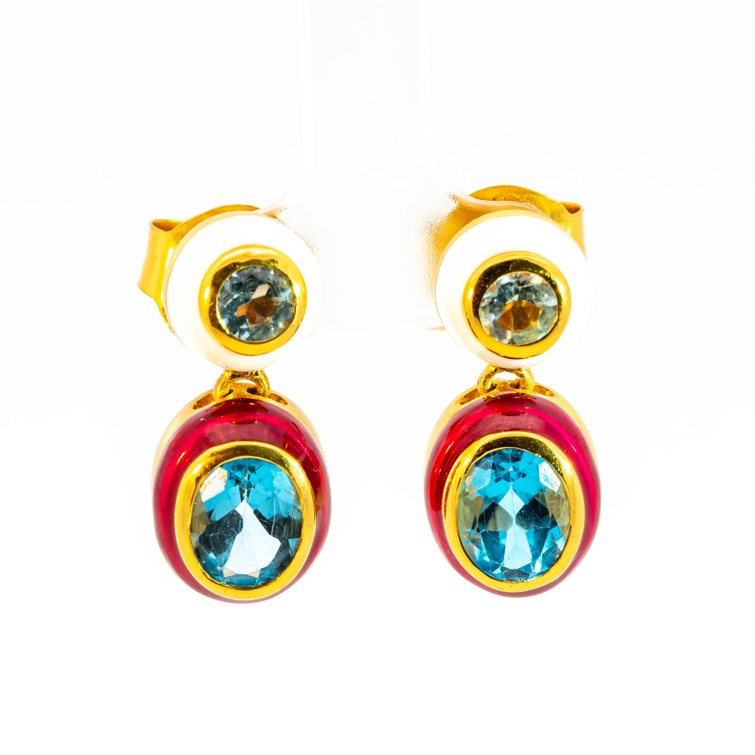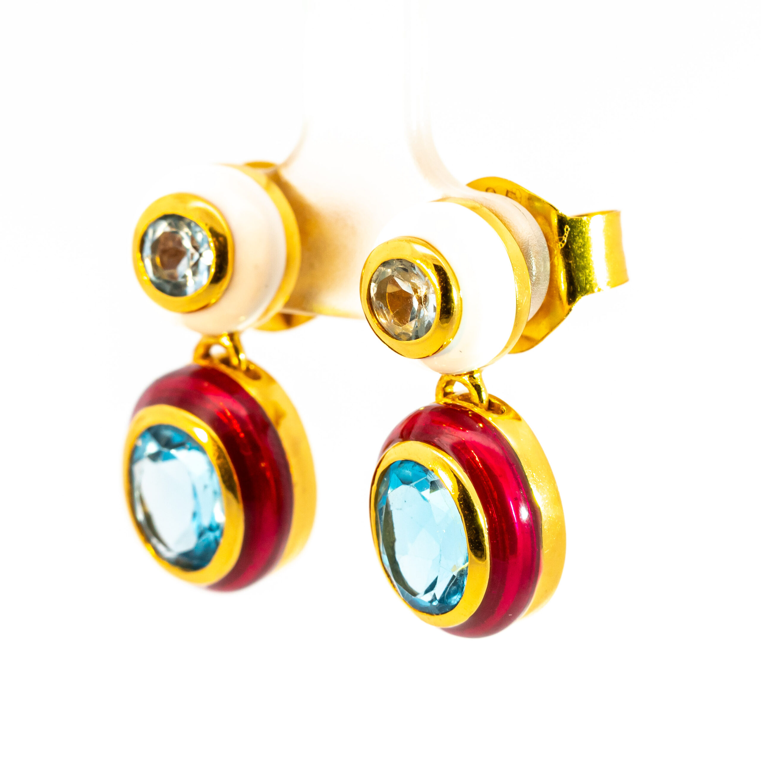 Sterling silver jewelry with 22k gold plated, natural stone and enamel.