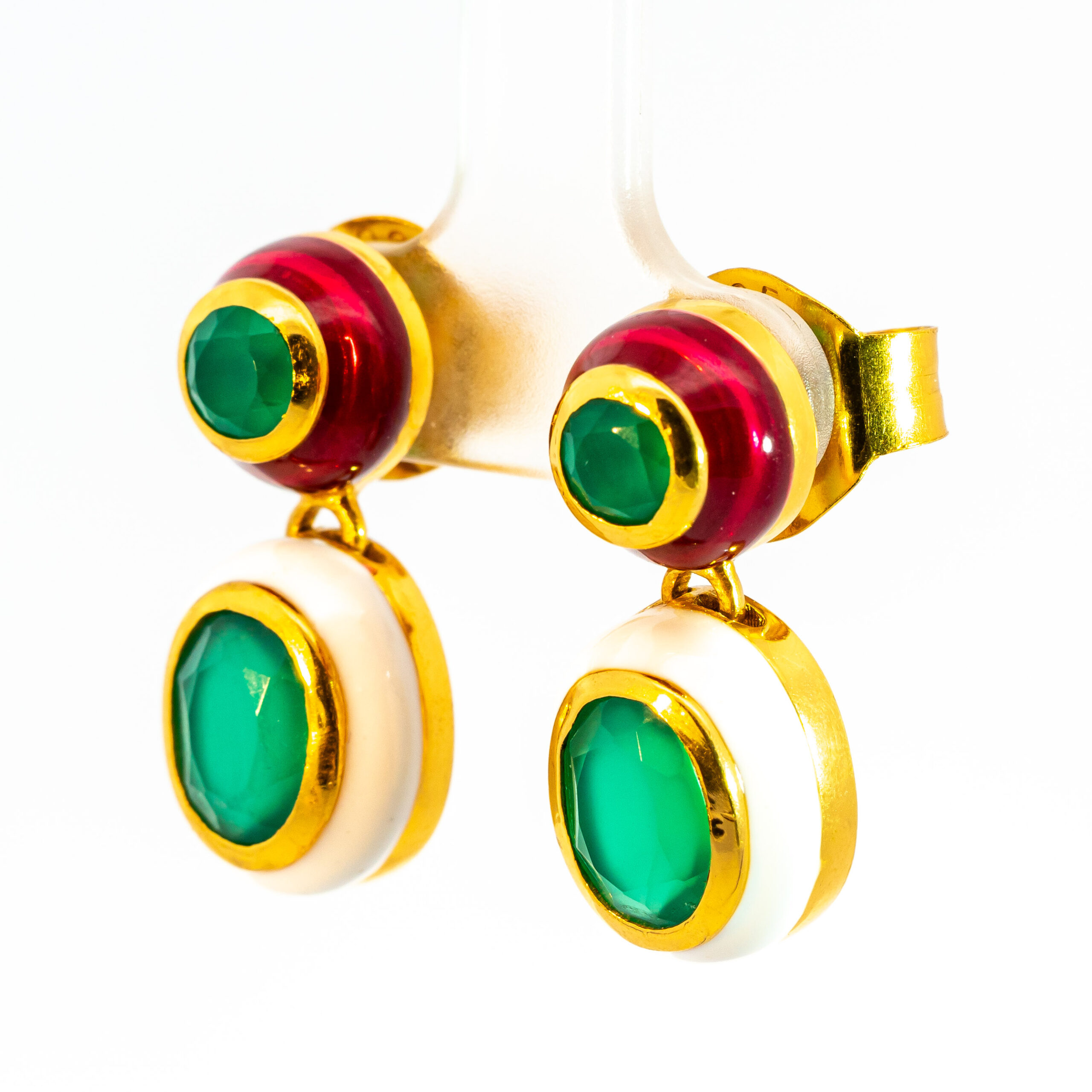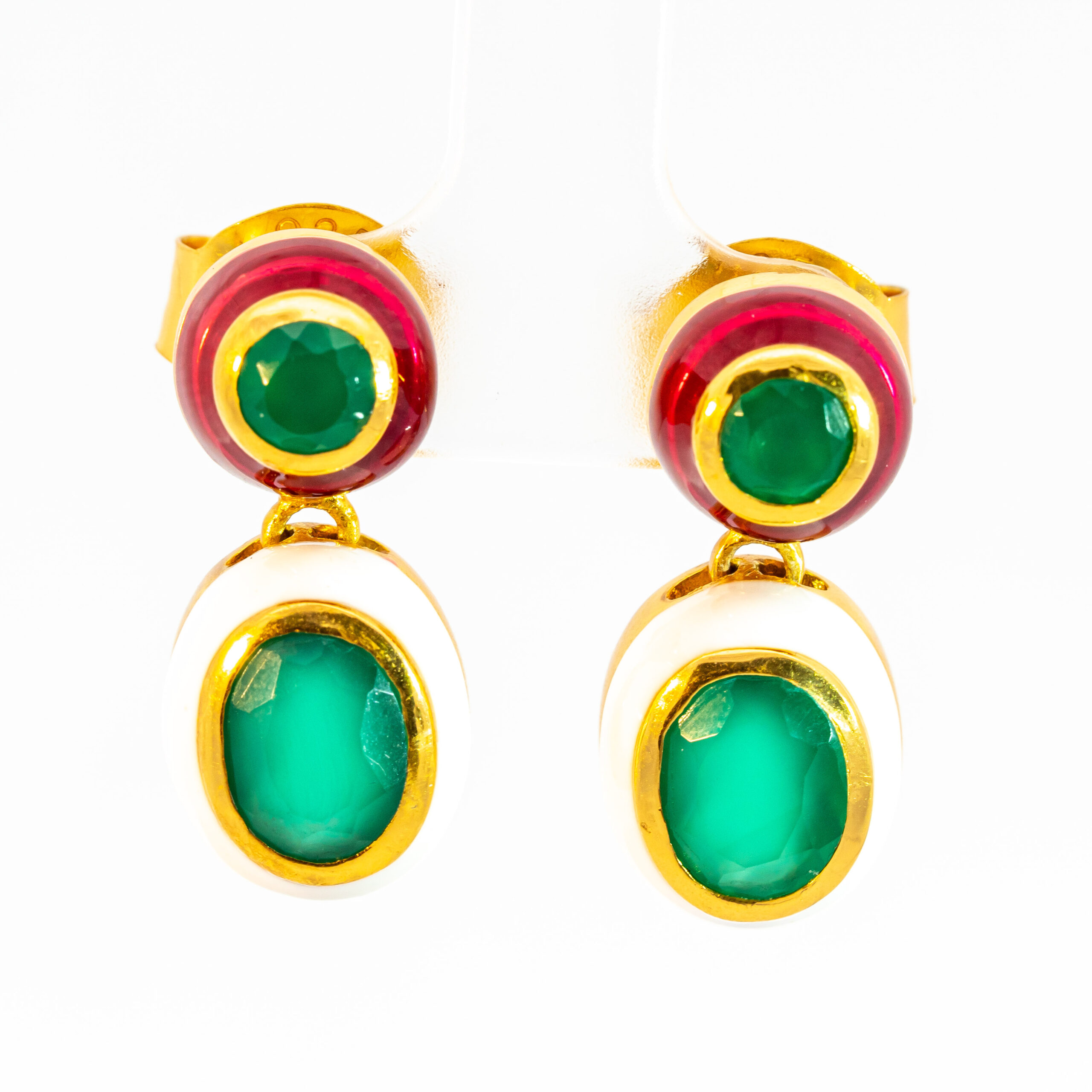 Sterling silver jewelry with 22k gold plated, natural stone and enamel.