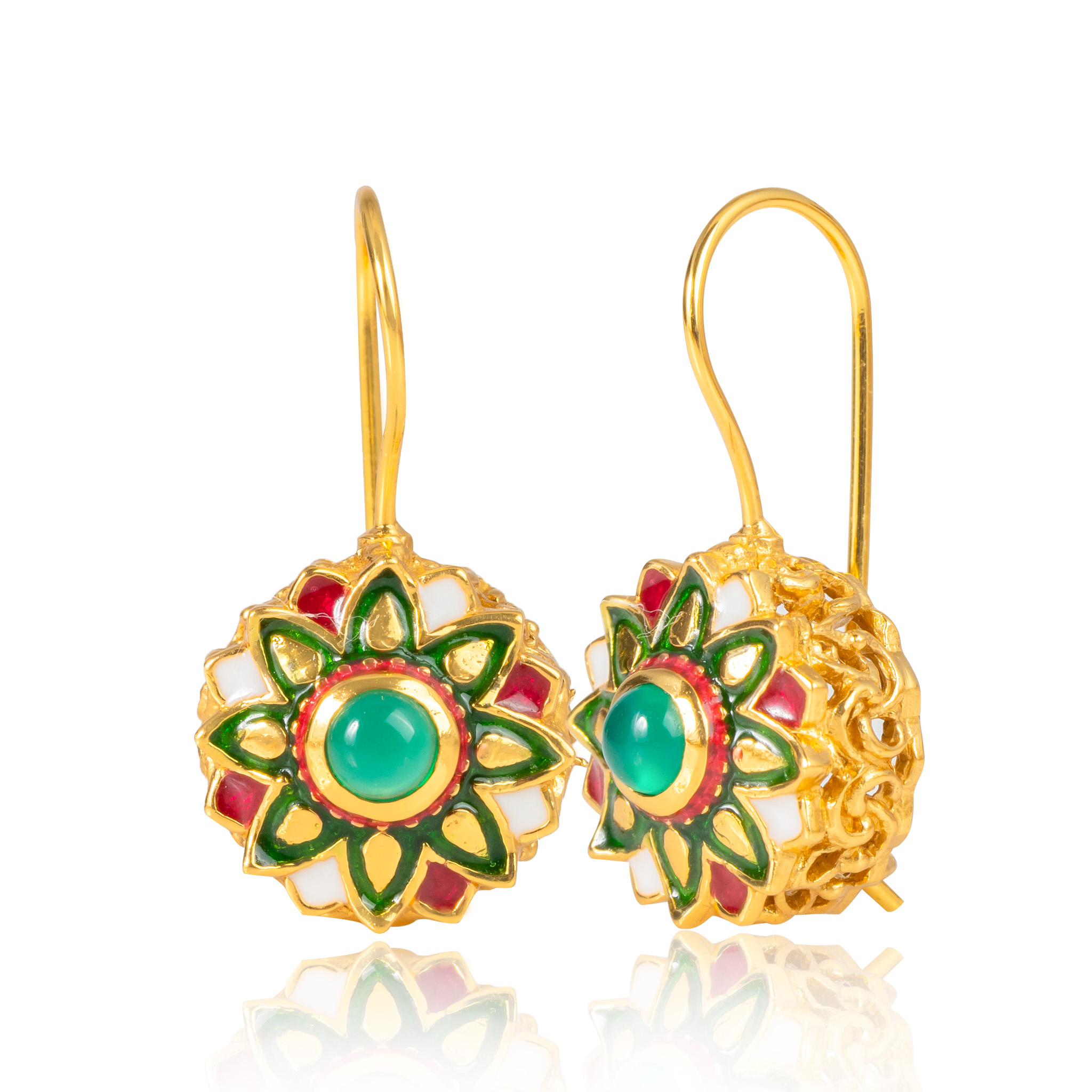 Sterling silver jewelry with 22k gold plated, natural stone and enamel.