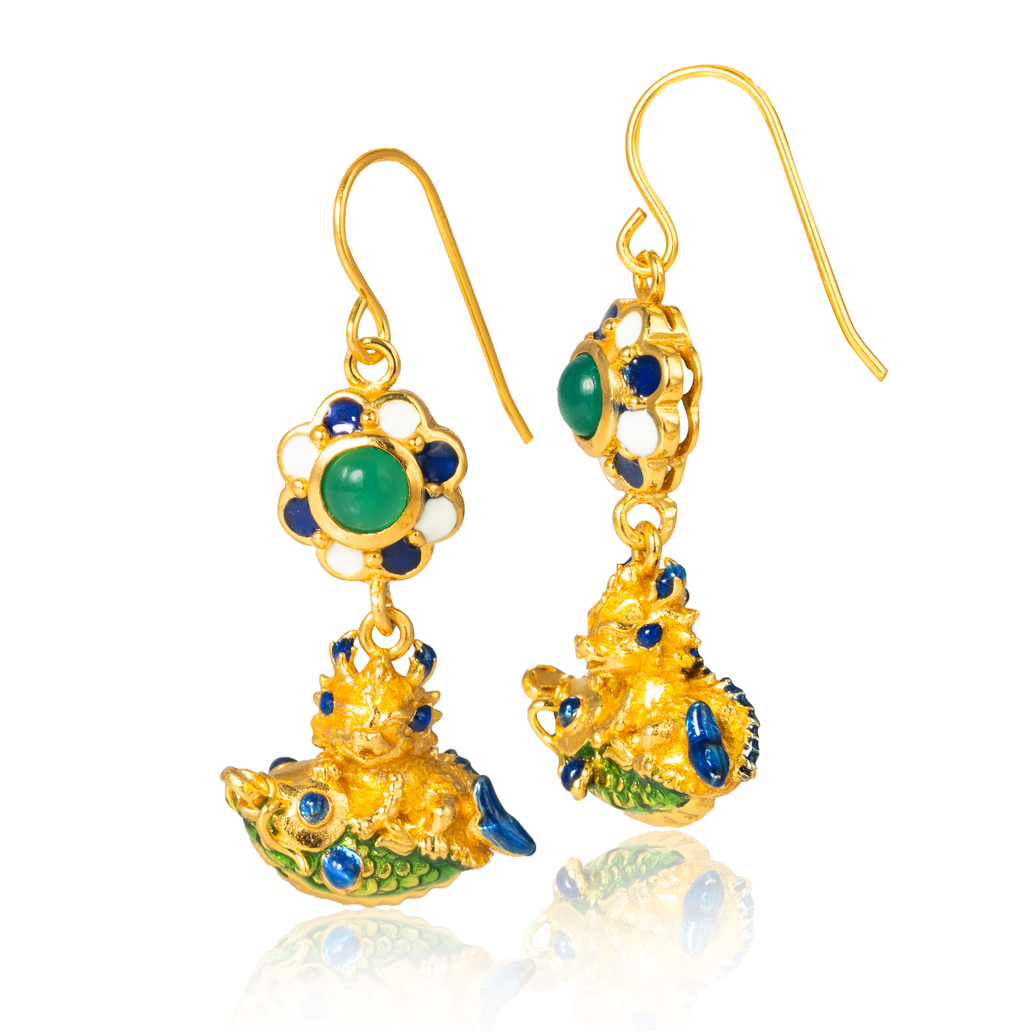 Sterling silver jewelry with 22k gold plated, natural stone and enamel.