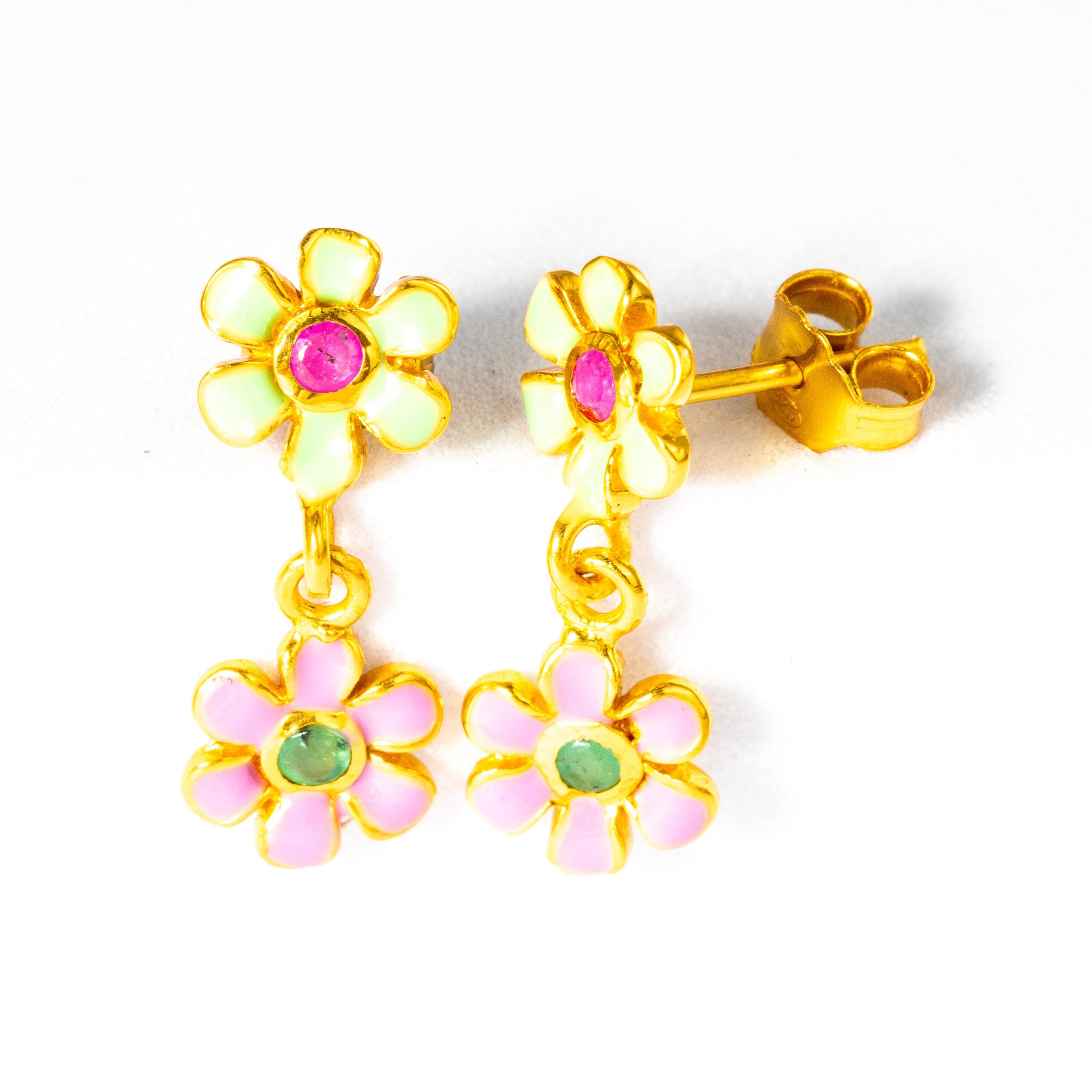 Sterling silver jewelry with 22k gold plated, natural stone and enamel.