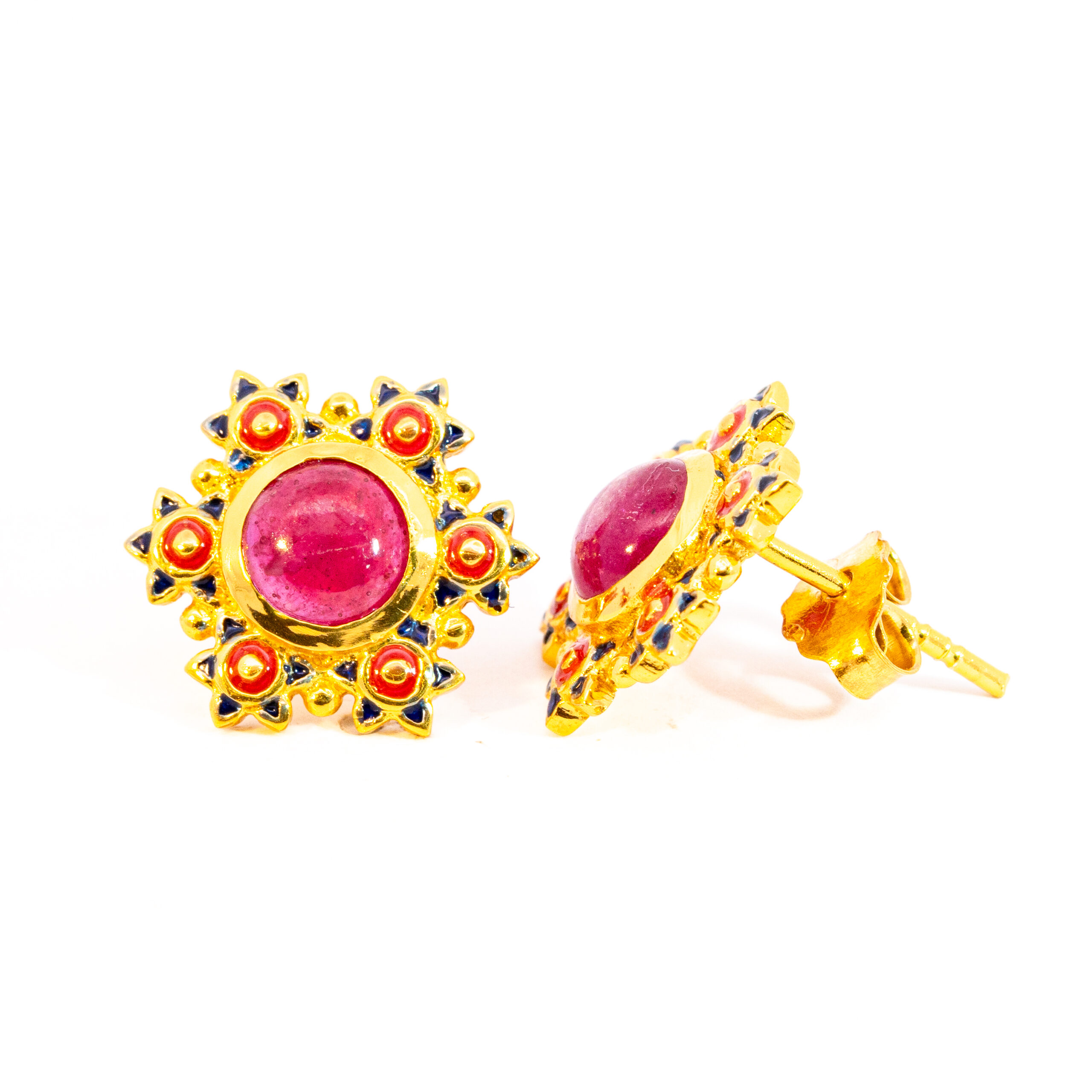 Sterling silver jewelry with 22k gold plated, natural stone and enamel.