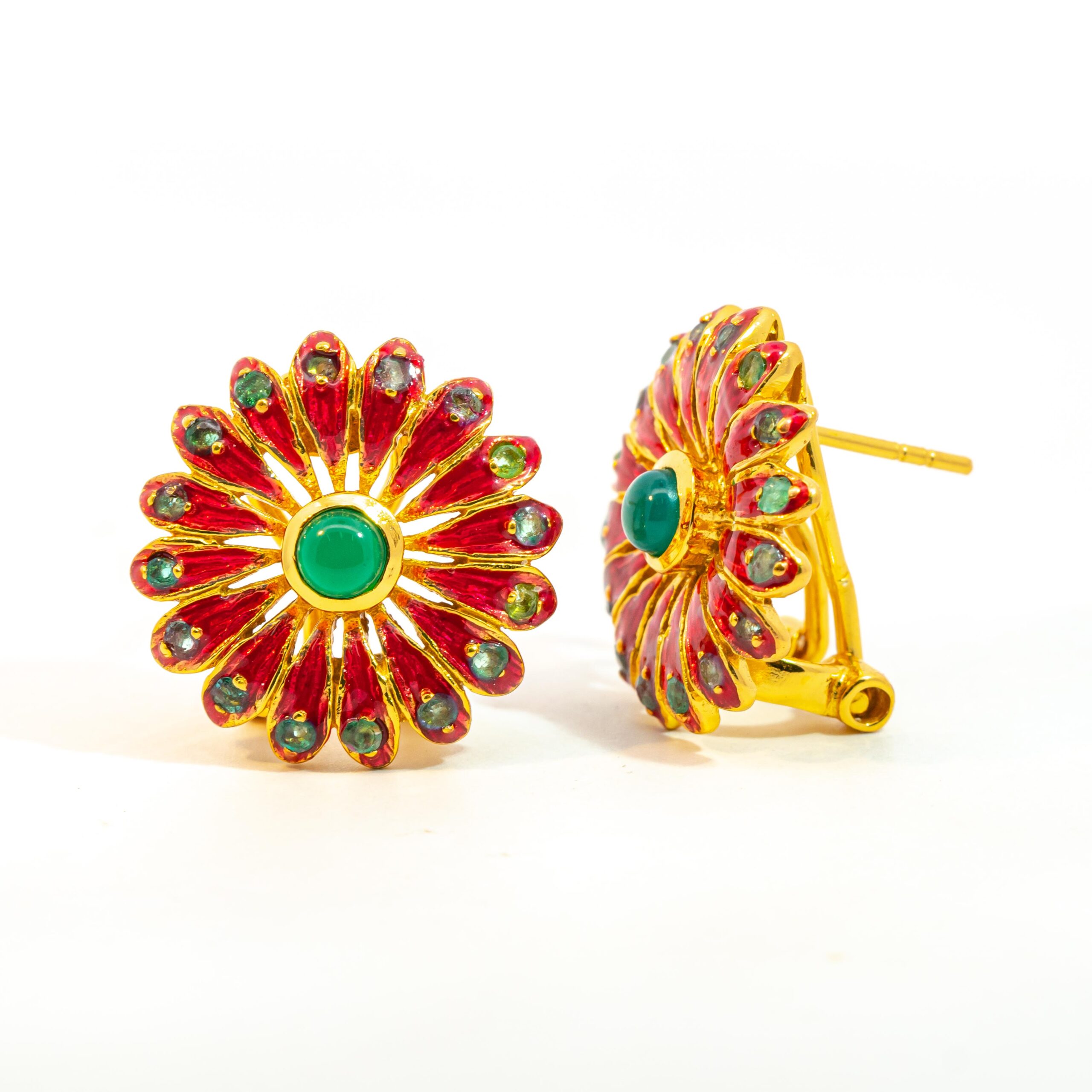 Sterling silver jewelry with 22k gold plated, natural stone and enamel.