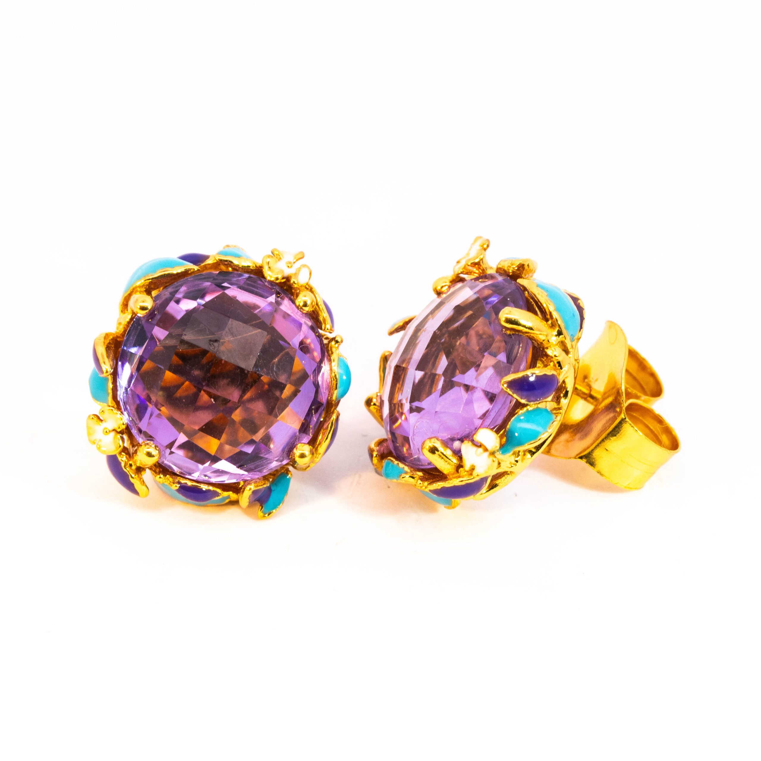 Sterling silver jewelry with 22k gold plated, natural stone and enamel.