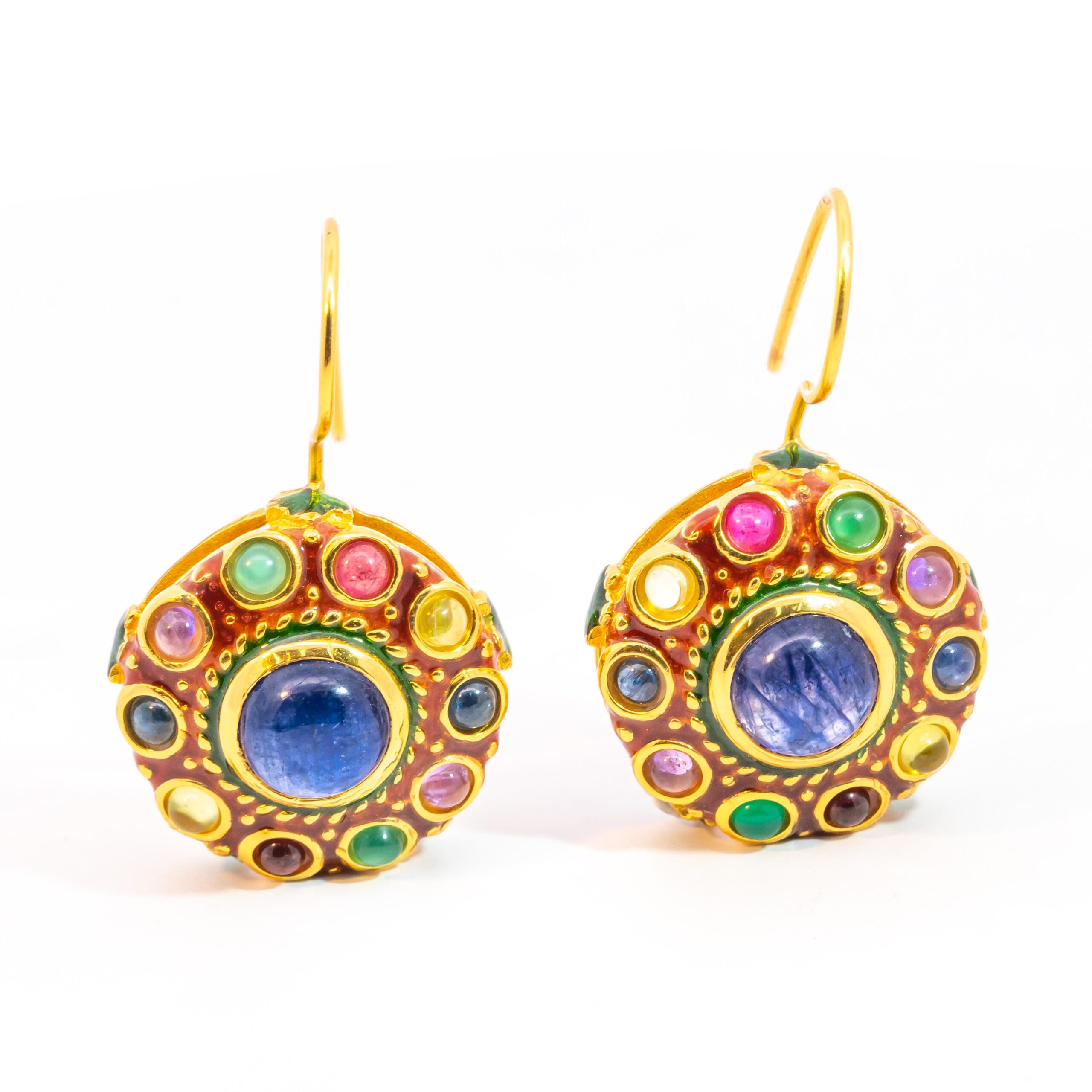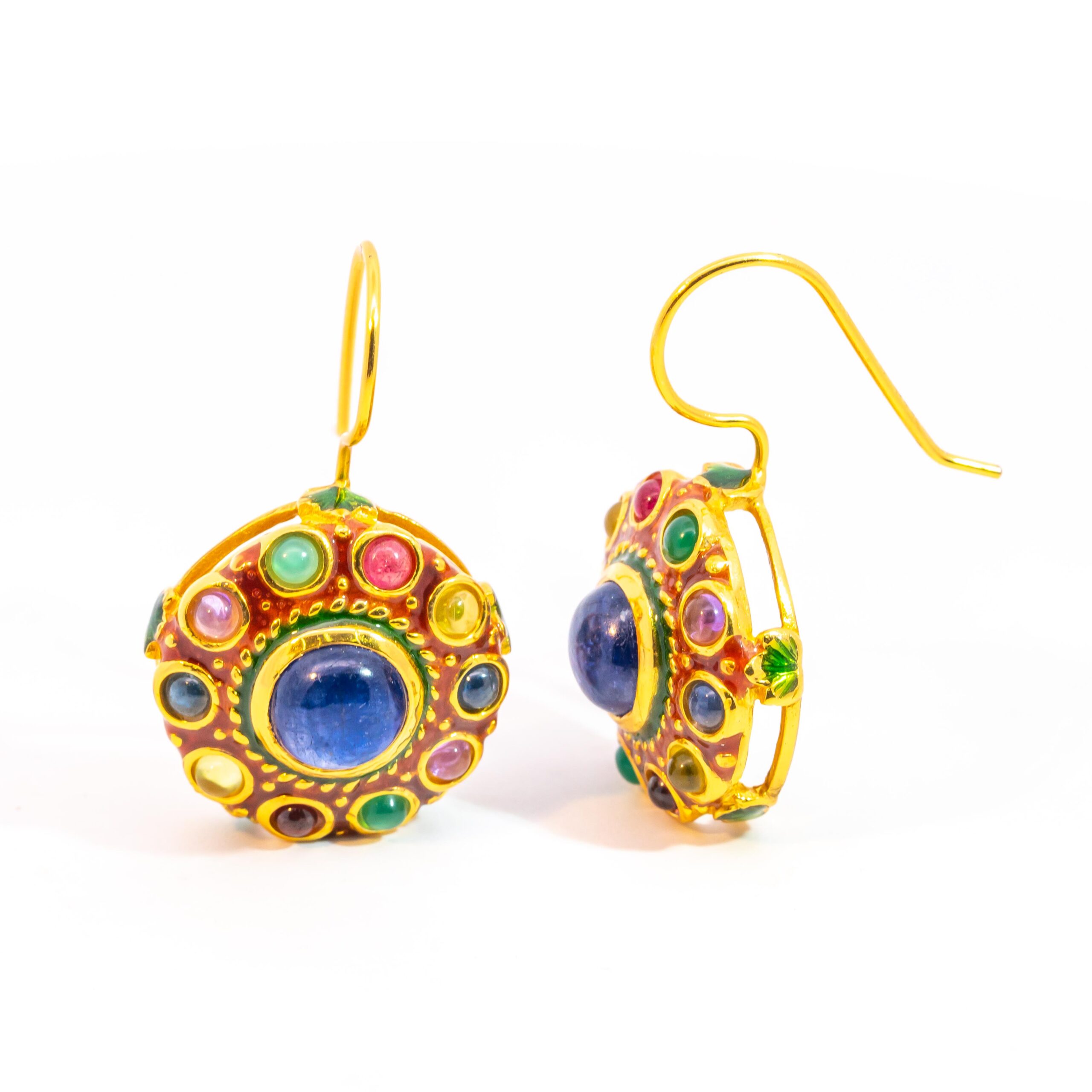 Sterling silver jewelry with 22k gold plated, natural stone and enamel.