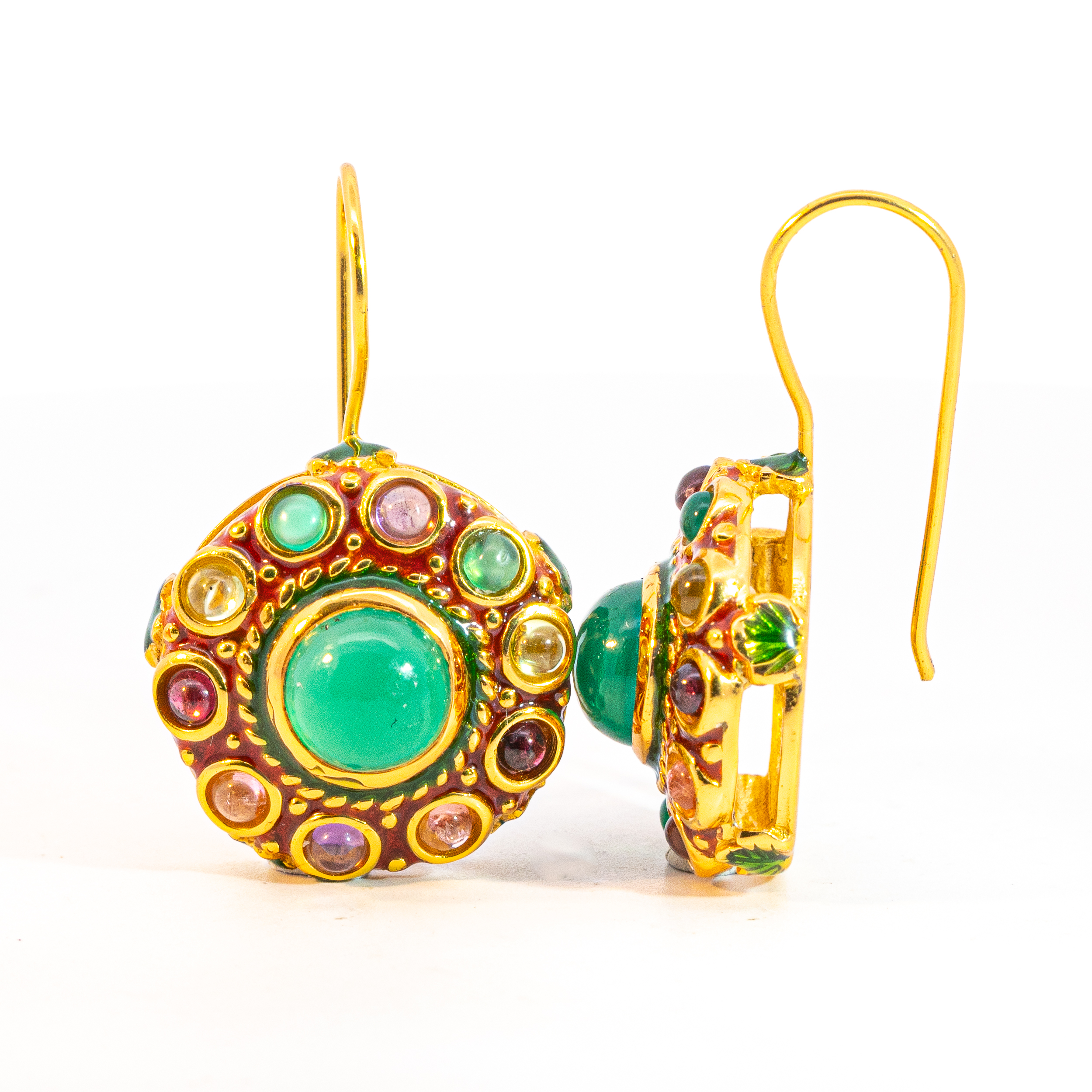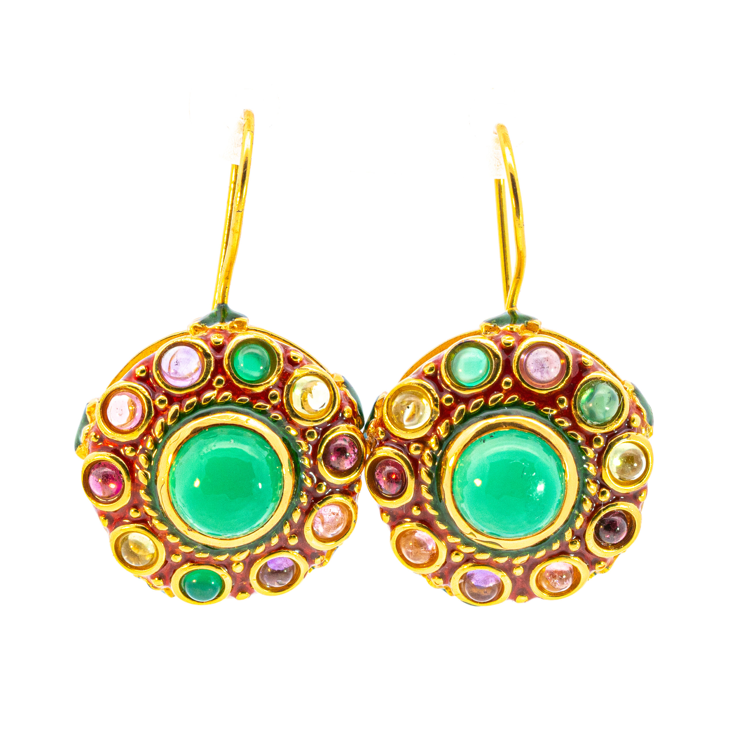 Sterling silver jewelry with 22k gold plated, natural stone and enamel.