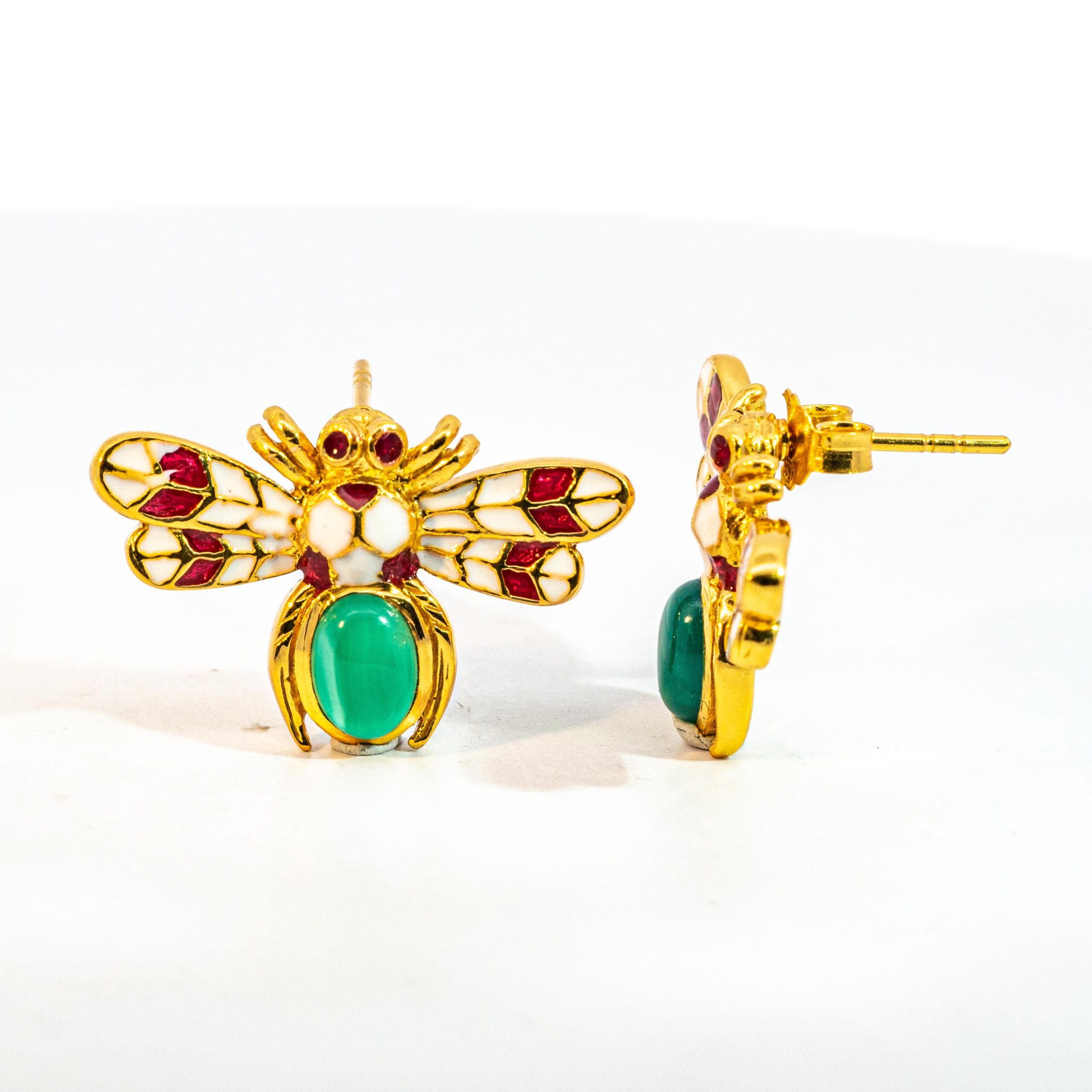 Sterling silver jewelry with 22k gold plated, natural stone and enamel.